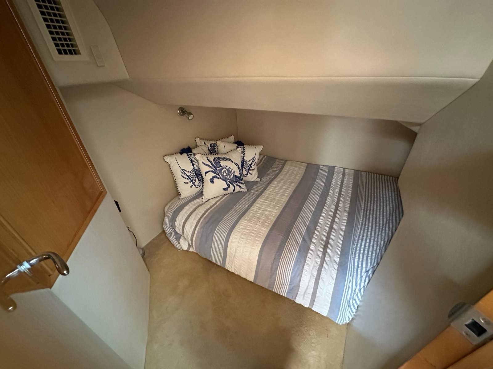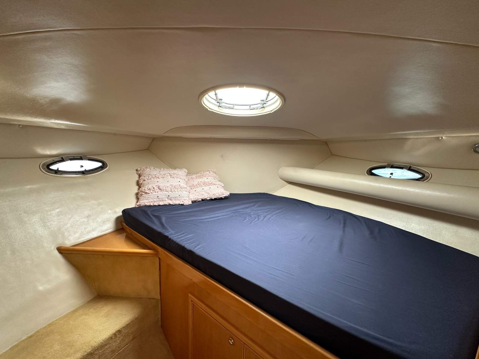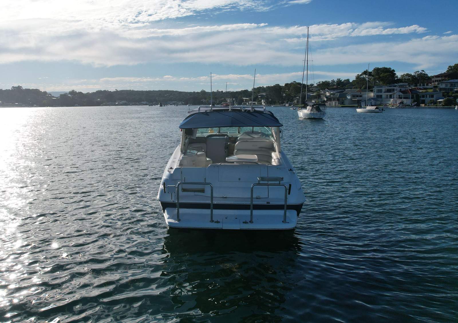 The M370 features a spacious two-cabin layout with a port side galley with an ample amount of storage and food preparation space! The upstairs of the M370 is one of the best. An Easy flow-through area with lots of seating and space for people to walk around! Fitted with a large boarding platform, 2 Stainless steel hand rails, cutting board, outboard motor bracket, full covers including sun extension out back, U-shaped lounge with removable Fiberglass 2 pac table, cockpit LCDTV, cockpit sink, and fridge. And equipped with a bow thruster, this boat is ideal for a boatie downsizing or the family looking to get into the boating community.