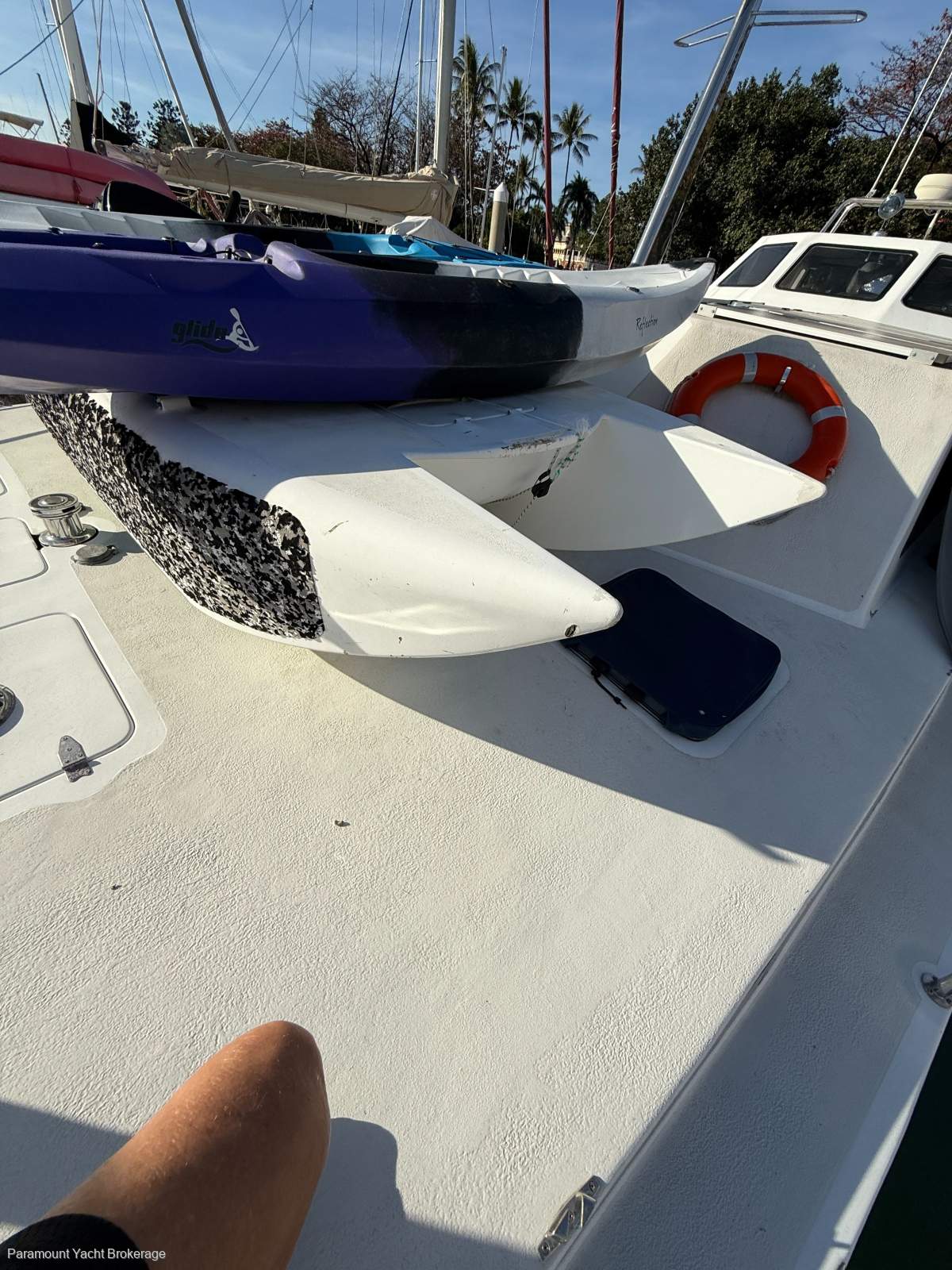 Electric Davit, front loader washer dryer in starboard lazarette. Tool shed in port lazarette.