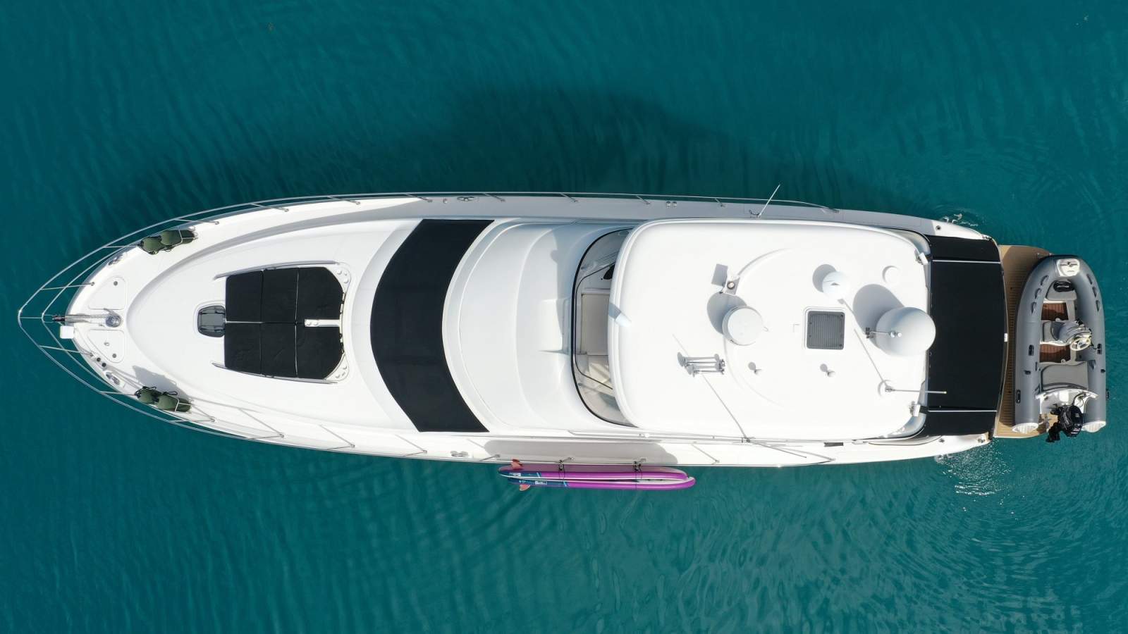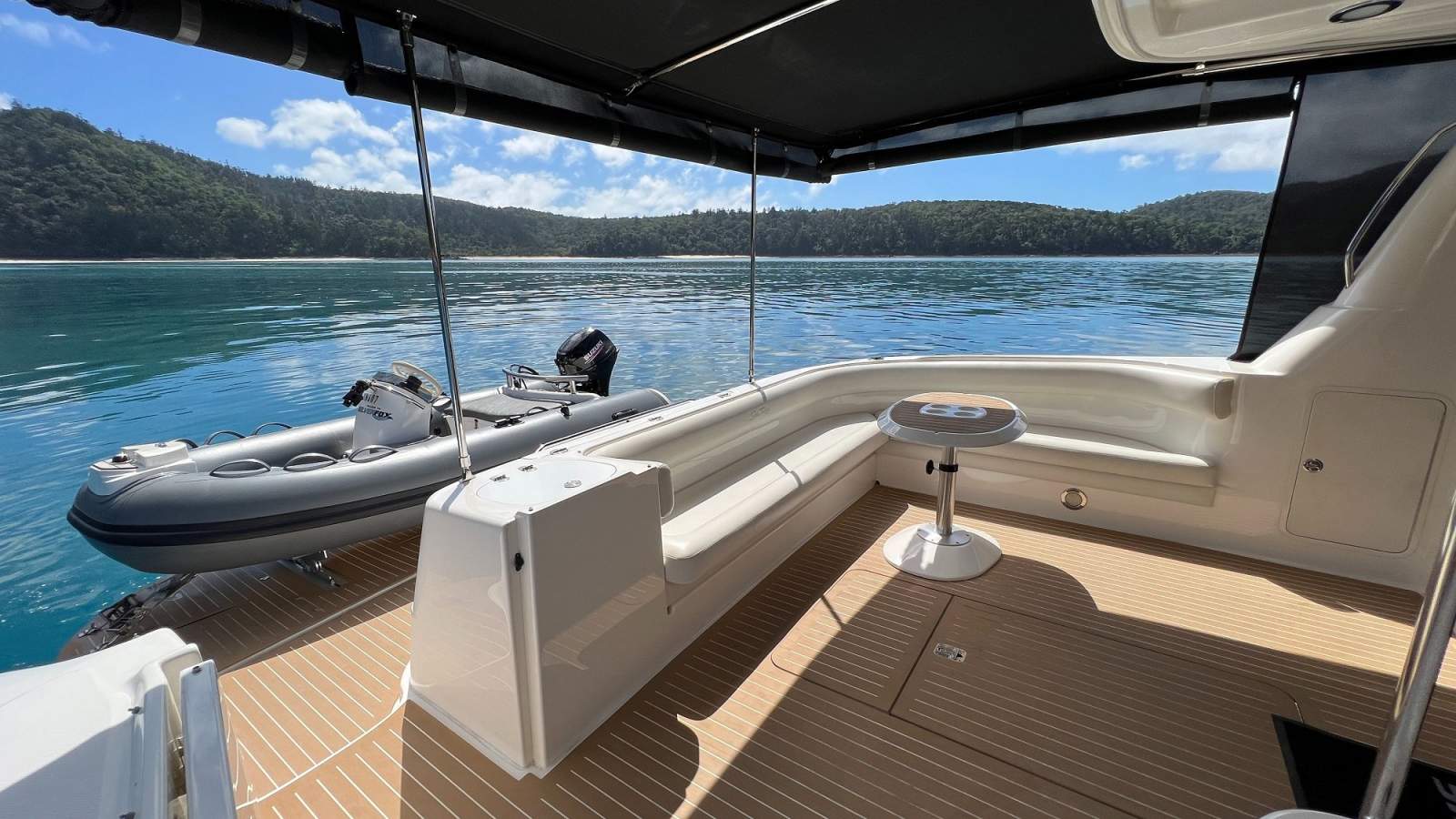 SILVER FOX also benefits from an extensive list of upgrades and custom features, including Dutch Esthec decking, upgraded flybridge air-conditioning, hydraulic bow and stern thrusters, upgraded anchor system with Ultra anchor, underwater lights, water maker, ARLO security camera system, extended aft awning, custom paddleboard rack, and much more.