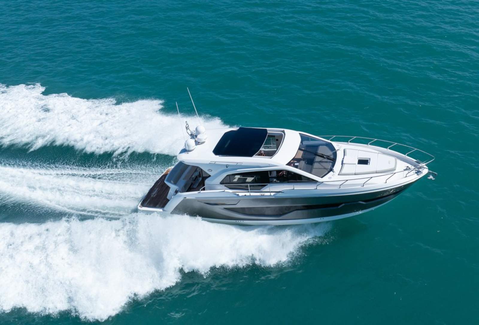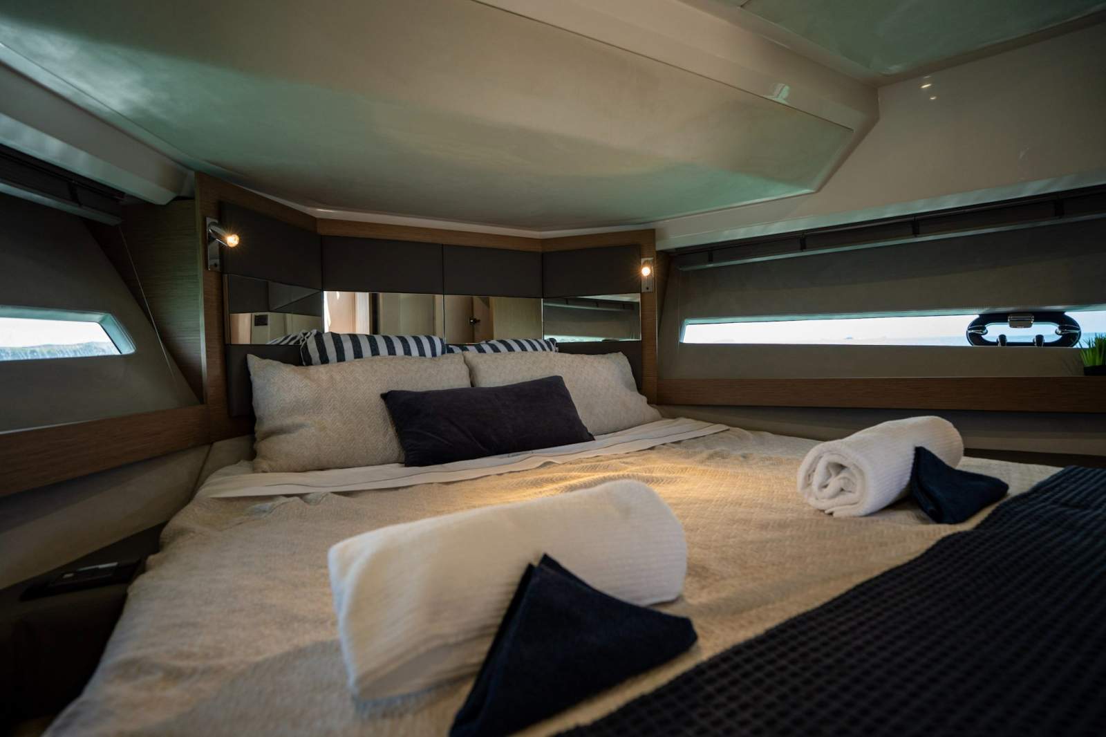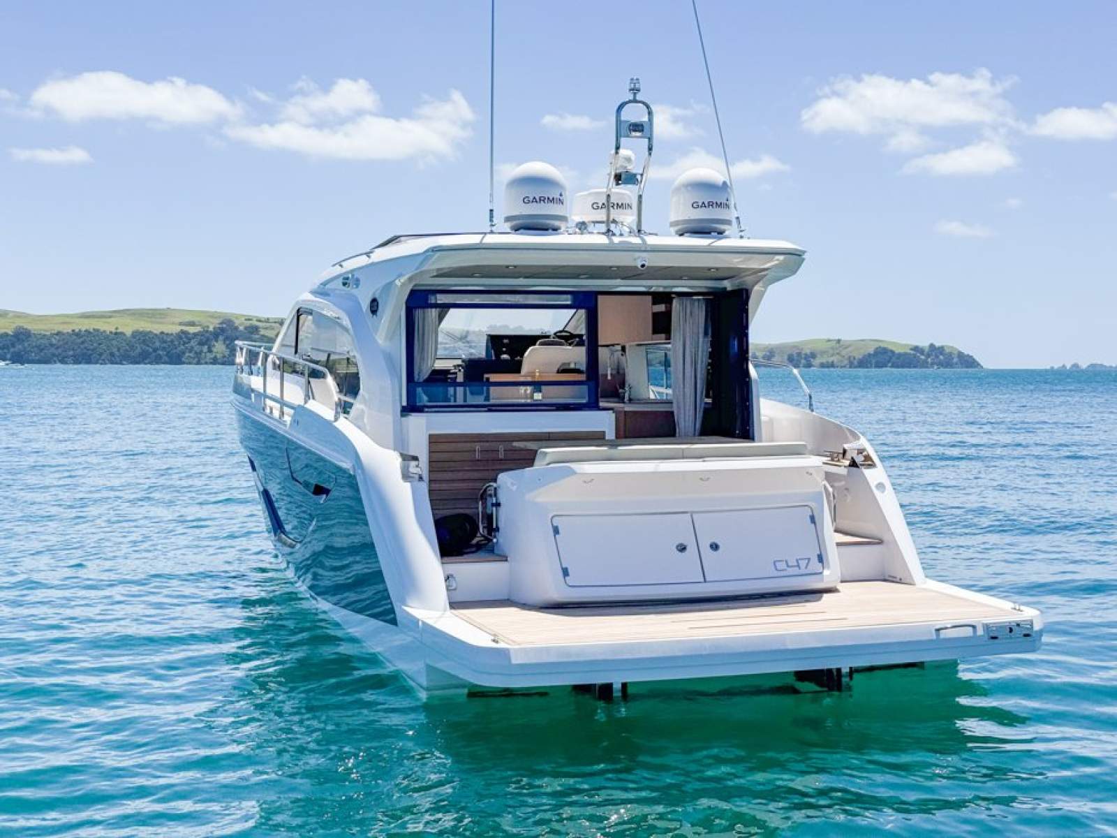 Italian design and craftsmanship are evident the moment you step aboard. The C47's expansive side windows and large electric sunroof flood the saloon with natural light, creating a bright, open atmosphere that feels far larger than her length suggests. The seamless transition between cockpit and interior living spaces makes her ideal for entertaining or relaxed coastal cruising in complete comfort.