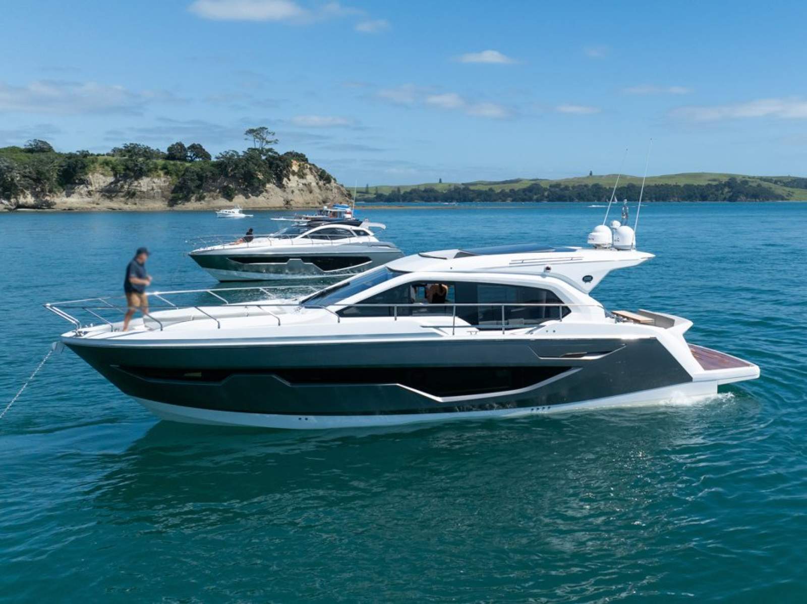 Delivered new to New Zealand in 2024, this Sessa C47 presents in near-new condition with just 25 hours on her upgraded twin Volvo Penta IPS650 engines. With the balance of factory warranty remaining, she offers the rare opportunity to secure a virtually new European sports yacht without the wait.
