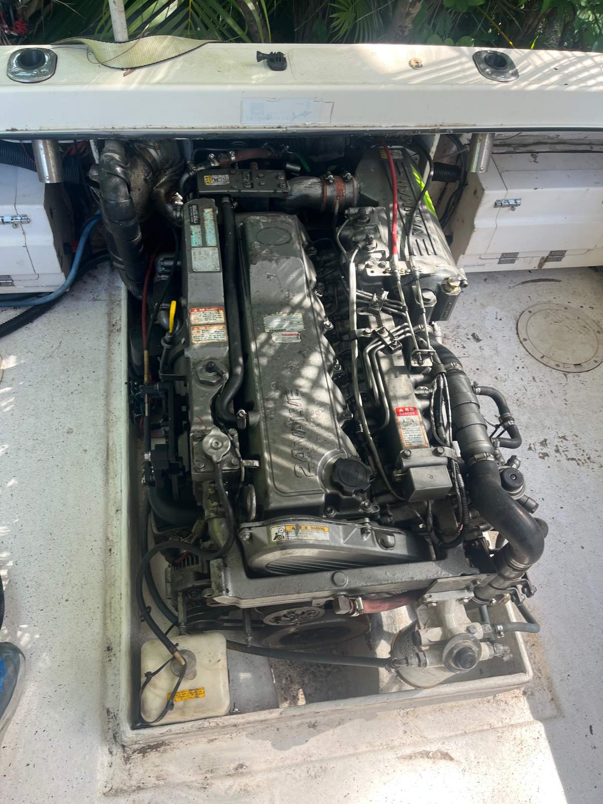 Powered by the renowned Yanmar 6lpa, 4.2 6 cylinder diesel. Power is fed to the water viia a Bravo 3 sterndrive. Both have 550 hours from new. Auxiliary tohatsu 20hp on bracket. Servicing and fuel costs are low