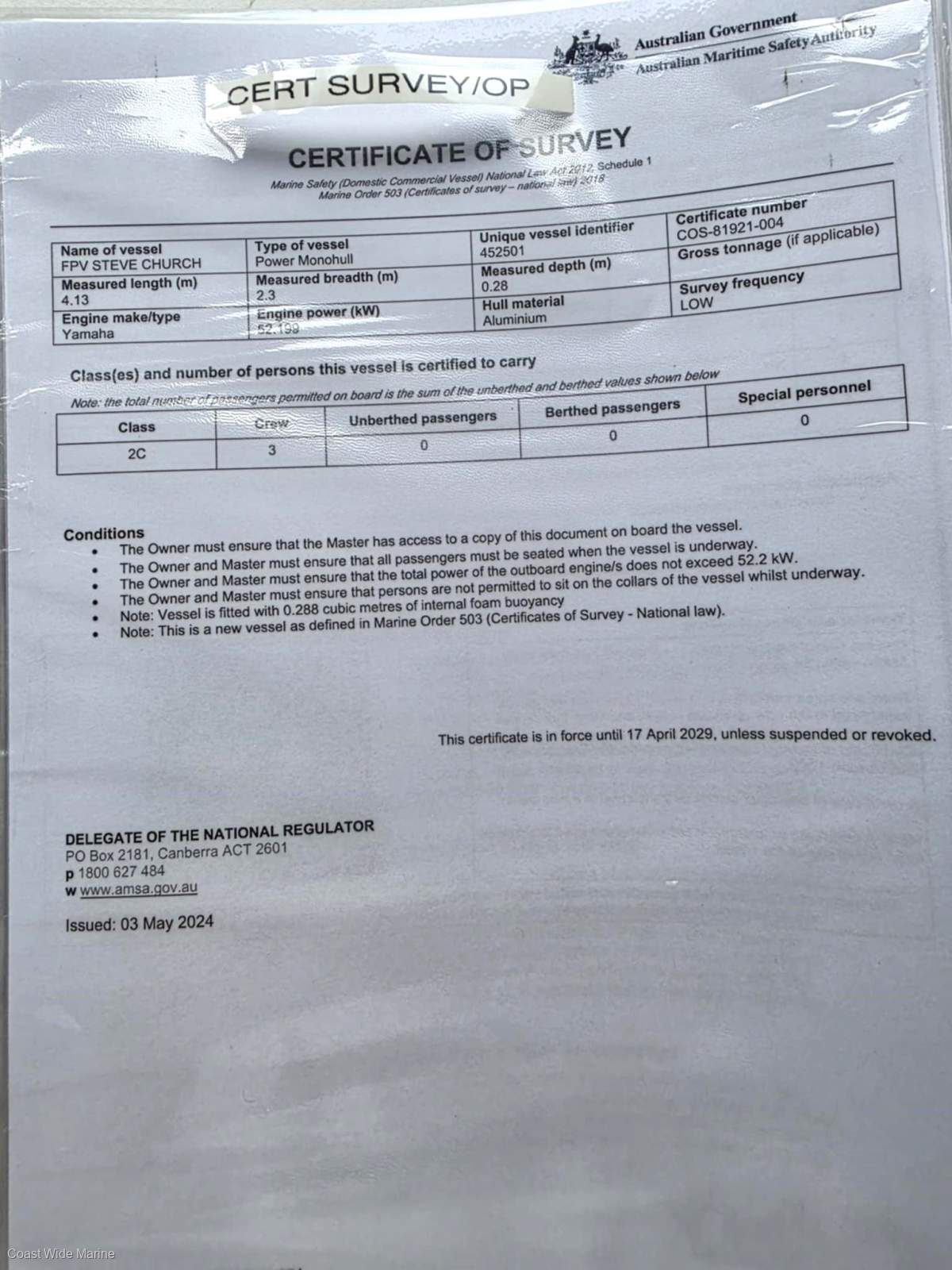 Current AMSA survey 2B - 10 personnel ( UVI -425 085 expires 06 May 2029)
