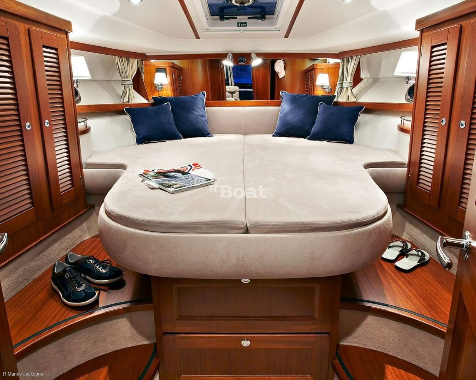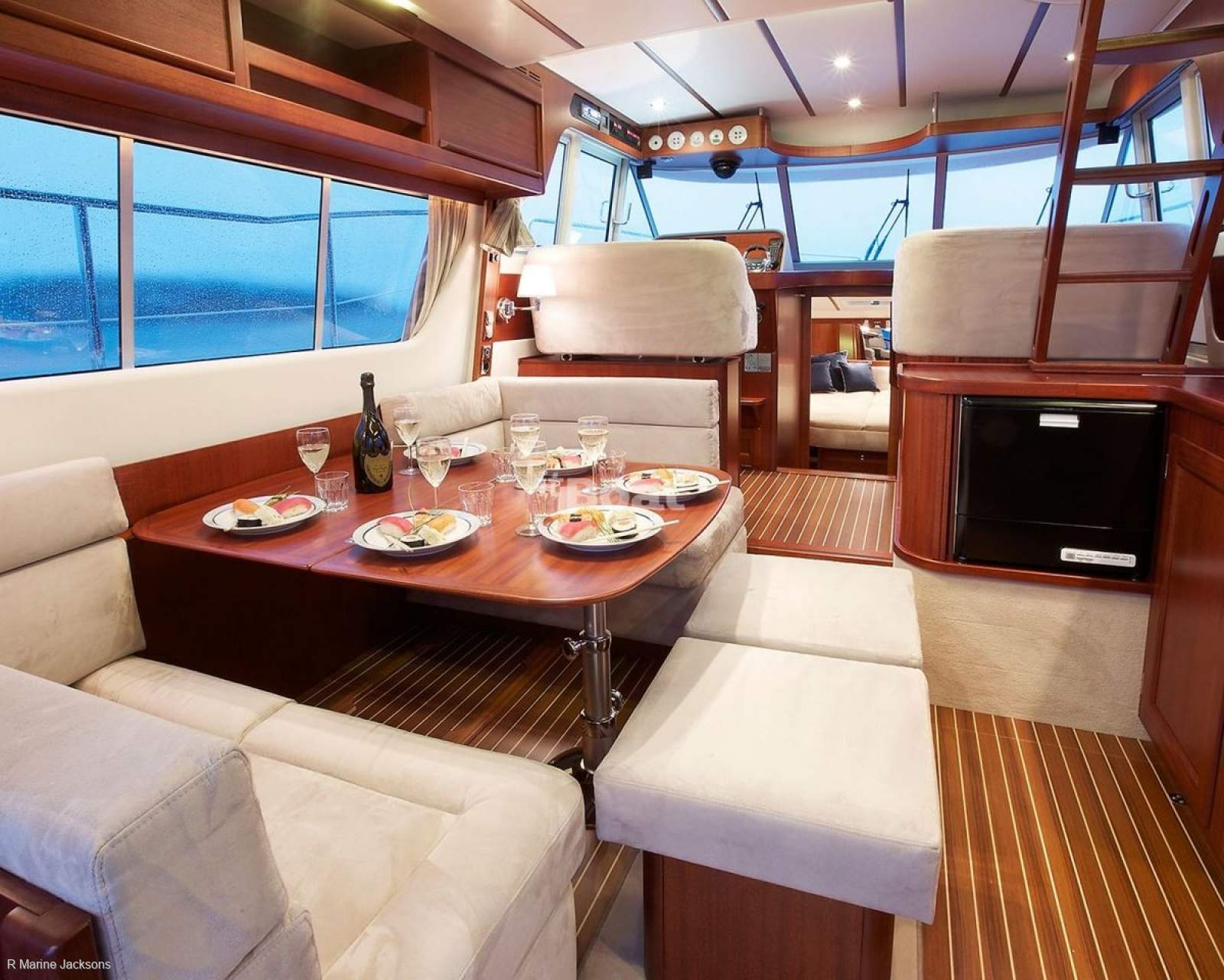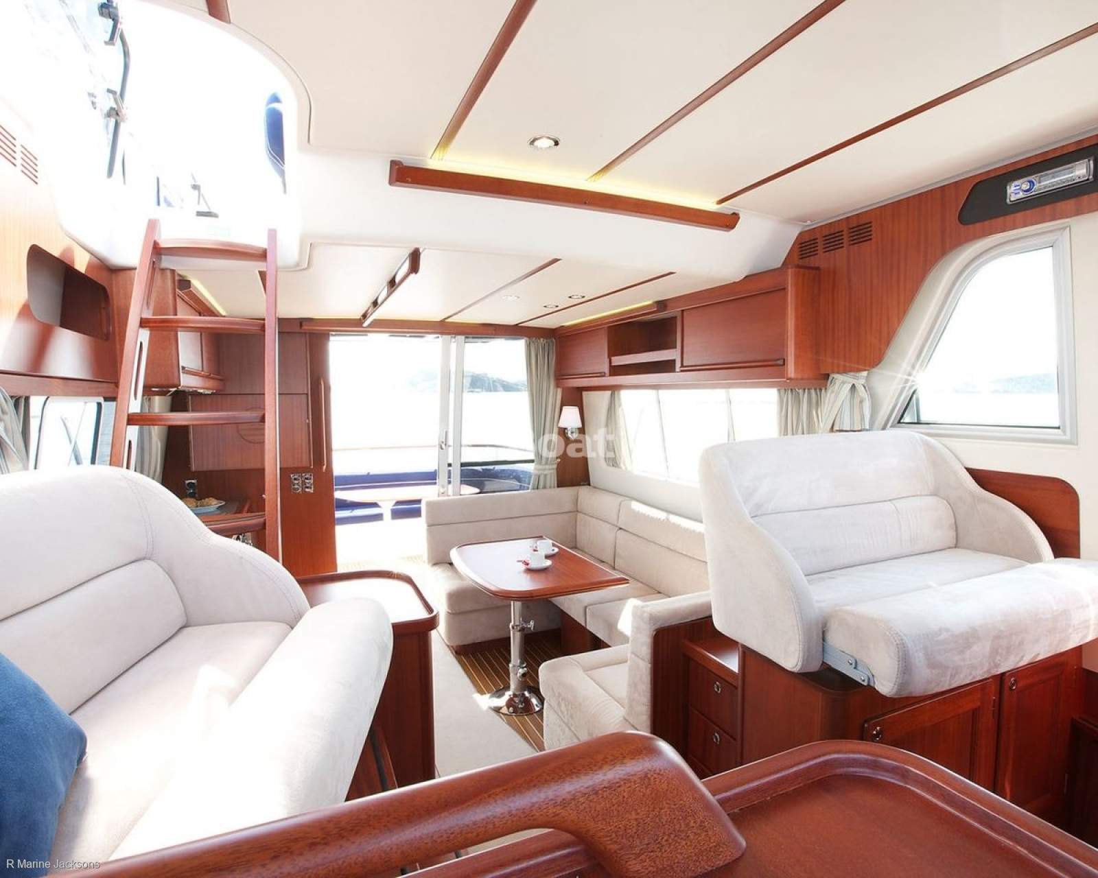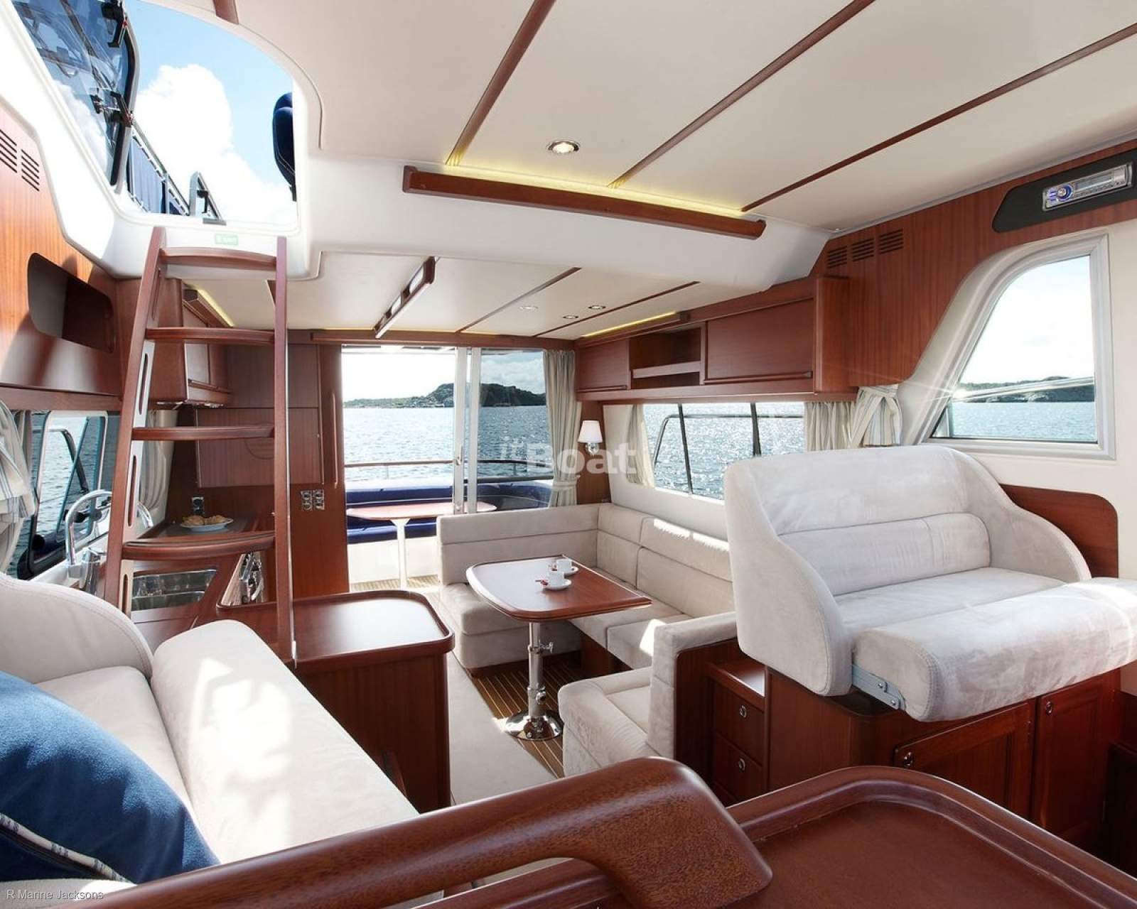 Layout: The design incorporates walkaround decks and side access doors to the saloon for excellent access, a feature praised by Motor Boat and Yachting as part of a "perfect flybridge cruiser" design.