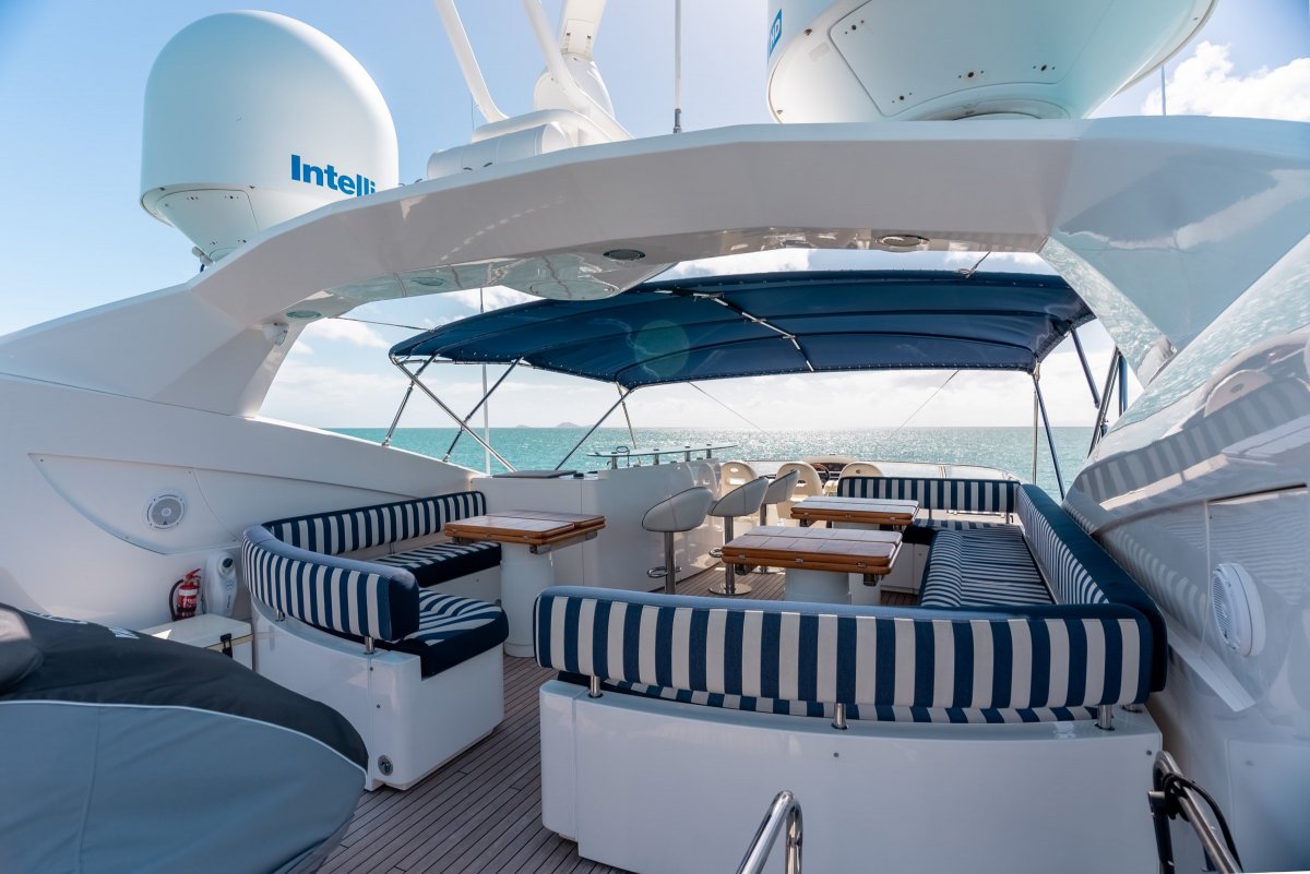There is a comprehensive inventory of quality options and inclusions with many recent upgrades including 2 new gensets, upgraded electronics and entertainment systems, upgraded floors, soft furnishings and interiors, exterior upholstery and covers, all new galley appliances, inventory also includes Hydraulic Bow & Stern thrusters, tender, hydraulic swim platform, Passerelle, watermaker, crew cabin aft, laundry and walk through engine room, upgraded tropical air, BBQ, flybridge wet bar with fridge and icemaker, saloon fridge & icemaker, davit crane to flybridge, Jetski, underwater lights, backlight colour changing nameplate, bow sun lounges, screens, upgraded covers and so much more.