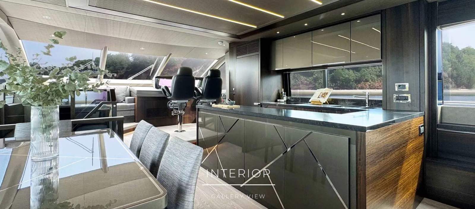 Not only does this model cut an impressive silhouette on the horizon, but an expanse of glass and sunlight also welcomes you onboard the 76 Yacht, and the main deck allows you to entertain with an almost 360-degree view of your surroundings. For 'al fresco' life, this flybridge yacht provides unprecedented levels of space and flexibility to suit owner needs. On the flybridge, choose a spa tub, jet-ski with crane or additional sunbeds to maximise this space. Complement the superyacht feel with any number of layouts.