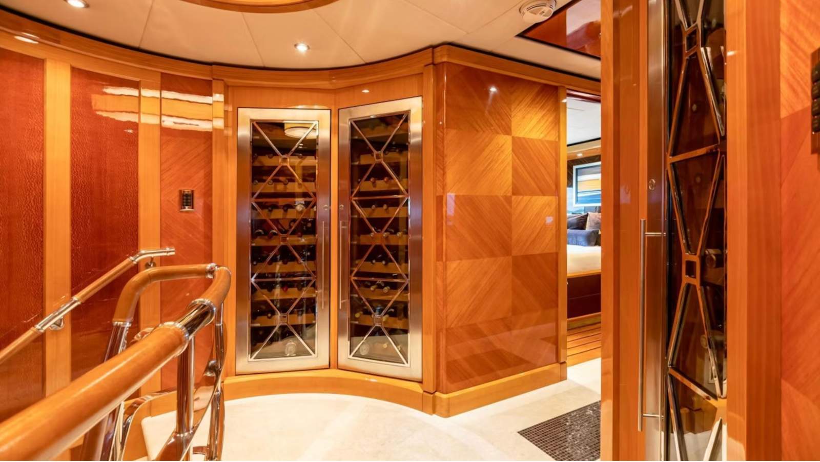 IMPROMPTU's six stunning staterooms welcome 12 guests. Her configuration is versatile, with a split-level master stateroom featuring a king-size bed and a unique elevated lounge with 180-degree views and his-and-hers en-suites. There is also a private study at the entrance with a desk. On the bridge deck is a VIP stateroom surrounded by large windows. On the lower deck are three king staterooms and a twin cabin with a Pullman, all accompanied by desk areas and shower en-suites. Nine crewmembers are welcome in a Captain's cabin and three bunk cabins.