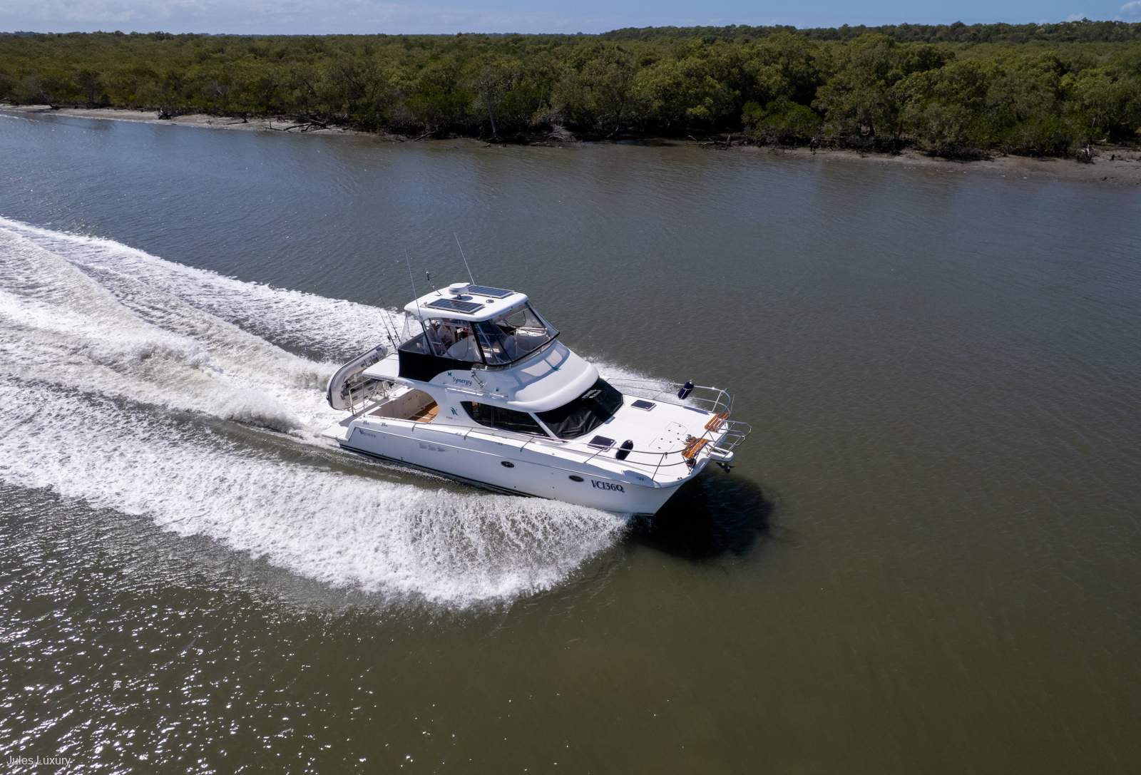 Speced to order and fitted with numerous extras. Powered by twin Steyr 166hp diesel engines, the drive shafts are protected, and the vessel can sit on the sand. Her performance is admirable, with a top speed of 20 knots and a cruise of 16 knots, all without blowing the bank at 15 litres per hour per engine. A Stanyon design built by Derrick Appleton out of the Voyager factory on the Gold Coast, these vessels have a huge following with their incredible design and phenomenal aesthetic appeal.