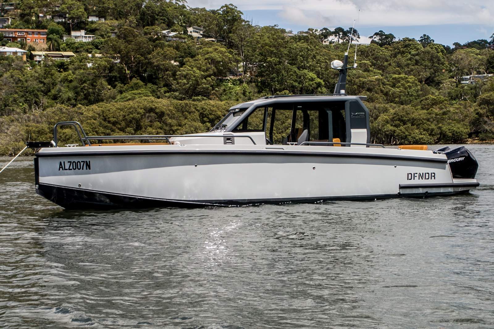 Rugged yet refined, the DFNDR 9 strikes a perfect balance to keep everyone onboard happy. While the military guide aluminum hull provides exceptional durability, the fiberglass superstructure provides a sleek luxurious finish. The bow area cleverly converts into a large sunpad for basking in the sun at anchor, imagine an afternoon lounging with the horizon as your backdrop. Come evening the forward cabin welcomes you with a comfortable double V berth and a private ensuite with electric toilet. It's a cozy refuge after a big day on the water, complete with a freshwater deck shower to rinse off. The interior fit out is tastefully minimalistic and functional true to its Scandinavian heritage. Thoughtfully appointed indirect LED lighting and a premium Fusion sound system set the mood, and a handy drawer fridge keeps your drinks and provisions cool. There is seating for 5 in the weather protected pilothouse, so your companions can ride in comfort no matter the conditions. Slide open the cockpit's side doors and pop the roof hatch to invite in the sea breeze on nice days, or close everything up completely if the weather isn't cooperating. Either way, 360 degree visibility from the helm, and the sensation of total command will make you feel alive on the water. Every surface and feature on this DFNDR 9 exudes purpose and quality. It is not a plush white yacht, but a beautifully engineered crossover that combines the soul of an offshore 4x4 with enough comfort to keep the family smiling. In fact, the muscular no nonsense aesthetic has a certain G Wagon on water charm, tough boxy and unapologetically cool which also means more headroom and space inside than sleeker boats of this size can offer. Your partner and guests will appreciate the secure feeling and conveniences on board as you take them on the adventure of a lifetime.