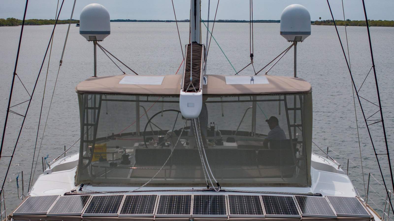 Ease of handling is assured with electric winches, an electric genoa and Code 0 furler, and a boom furler that allows mainsail operation at the touch of a button. Energy efficiency and autonomy are well catered for with 2.15kW of solar power, lithium house batteries for both 12V and 24V systems, and an Onan 17.5kW generator.