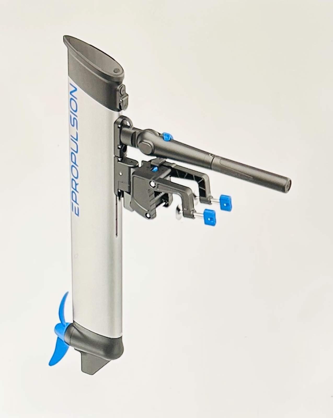 The streamlined design ePropulsion electric outboard weighs just 6.7kg, making it very easy to lift onto the dinghy, and there is no fuel tank or fuelling to worry aboard.