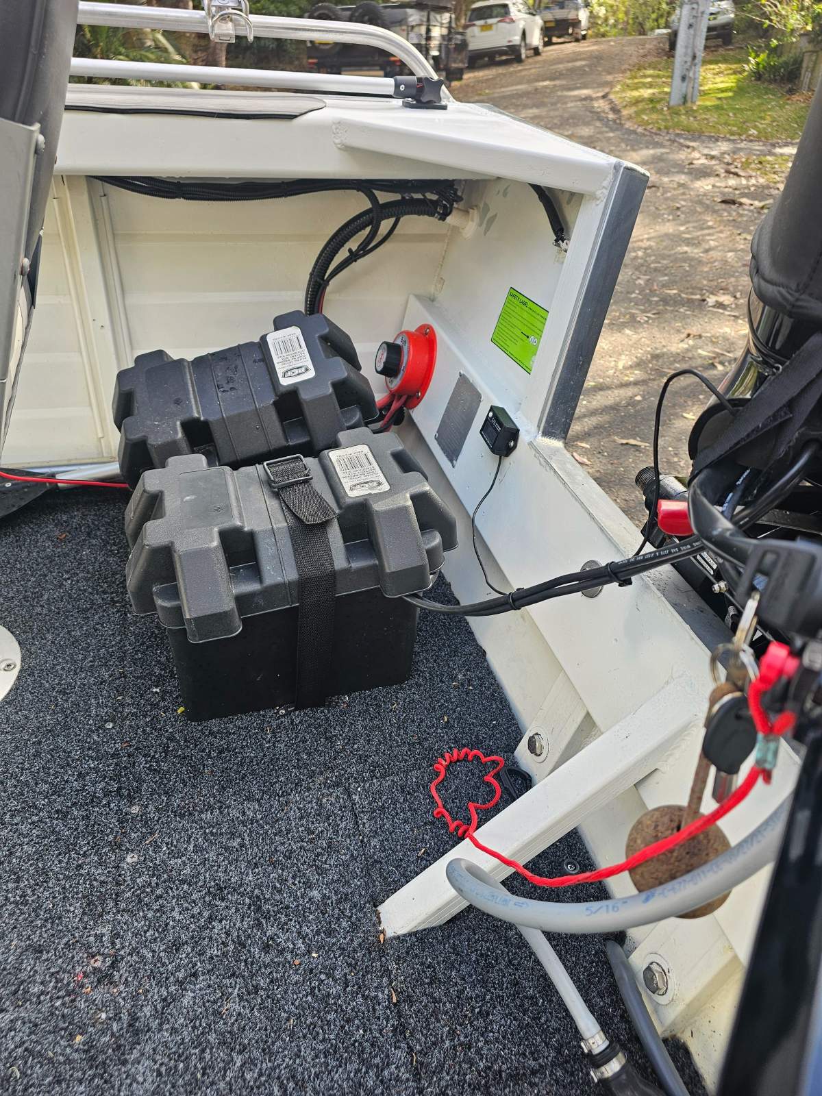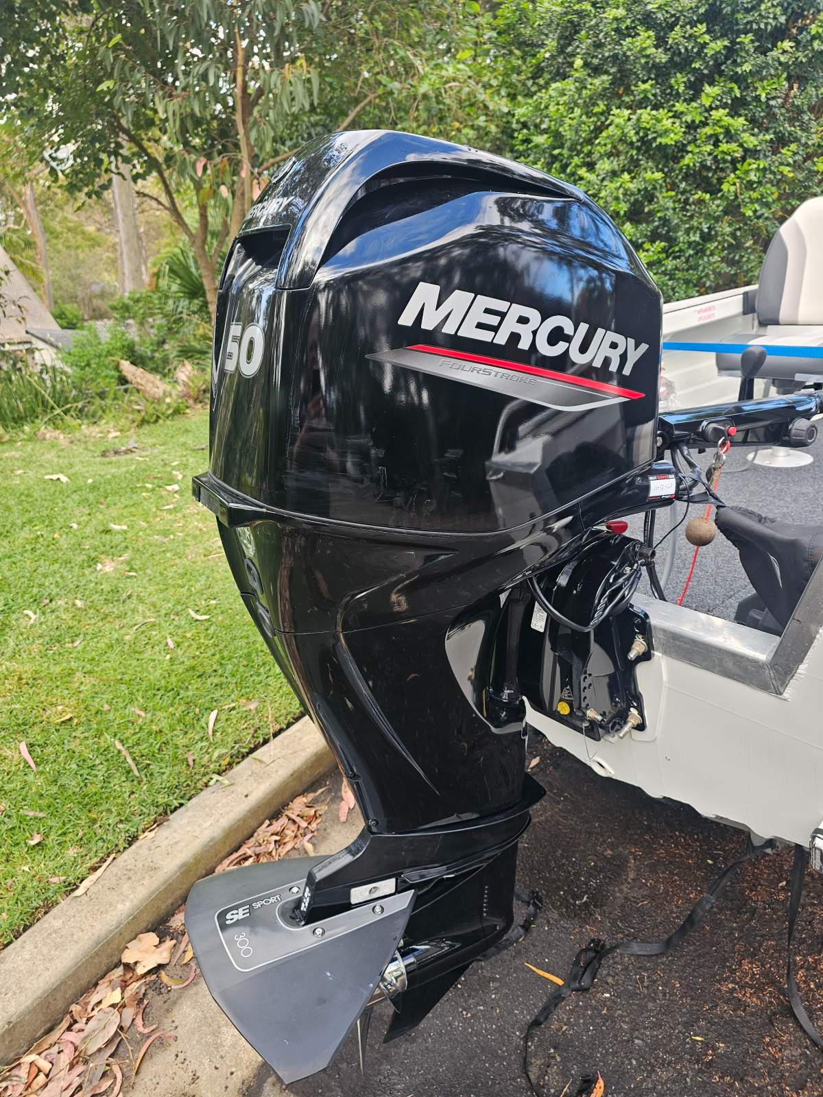 This boat has been well set up with carpeted full flat floor with flotation foam under, huge fuel tank mounted in under front floor hatch, 2 x new fold down seats with pedestals, plus an extra two seats never used, auto/manual bilge pump, full boat cover, 2 batteries with 4 way switch, nav lights, Garmen sounder, Uniden VHF Radio, under deck lights, blue under water transom light, rod holders, lockable storage locker, good trailer with spar wheel, new wheel bearings and trailer buddies fitted all with 8 months rego.