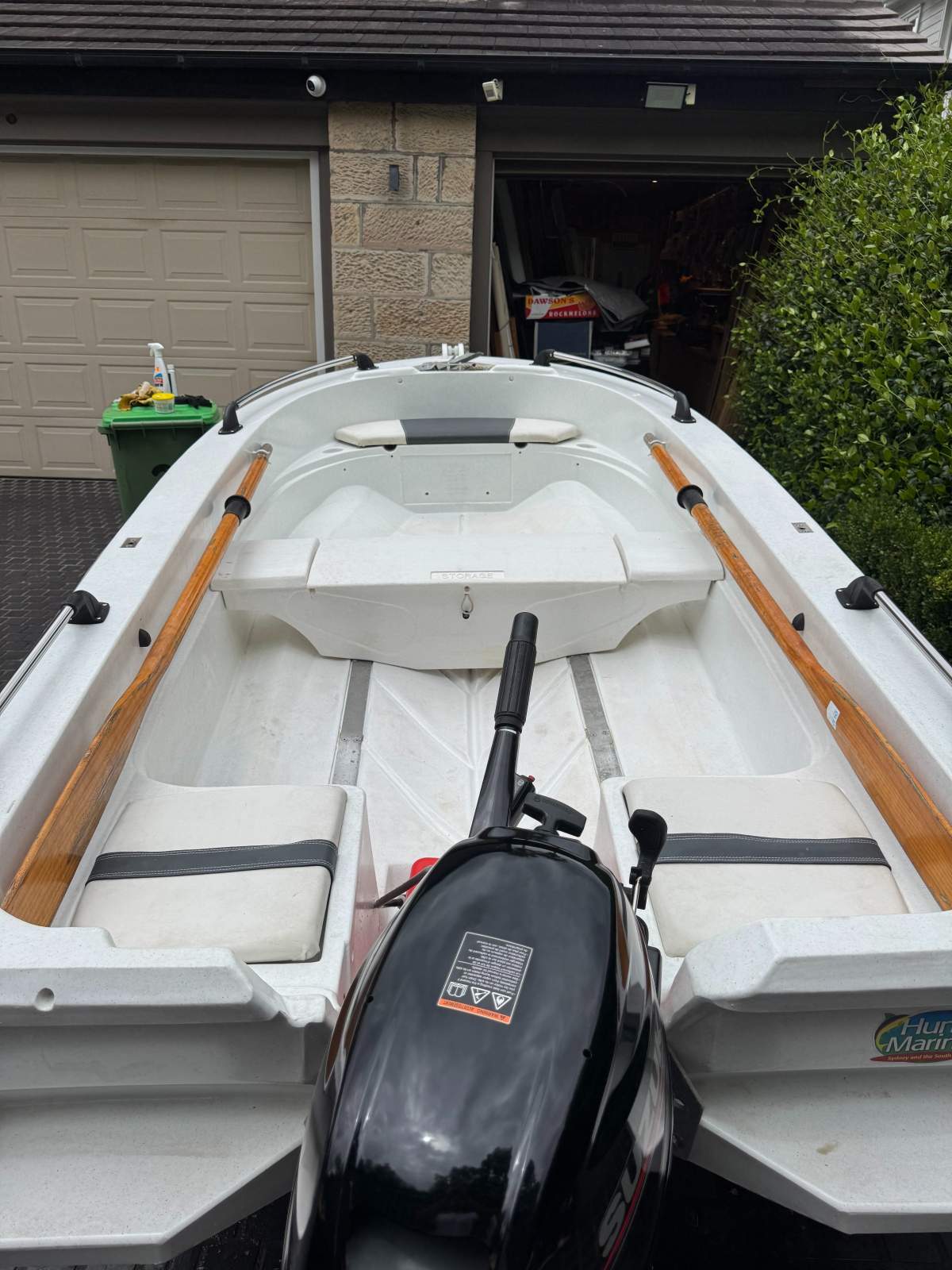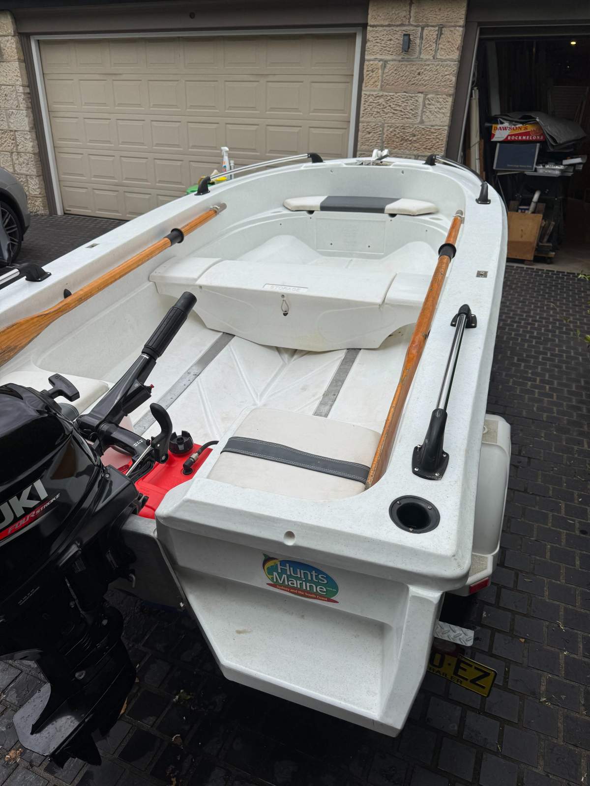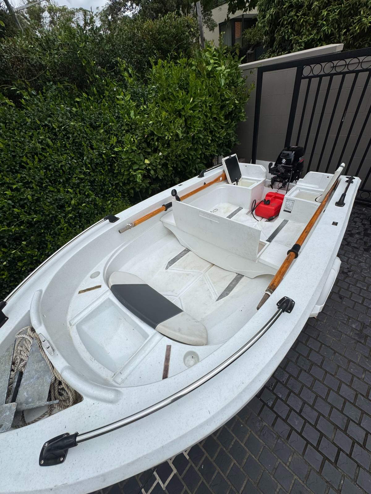 Fitted with a 15hp Suzuki 4-stroke outboard, recently repaired and in working condition. Reliable and fuel-efficient for this hull size.
