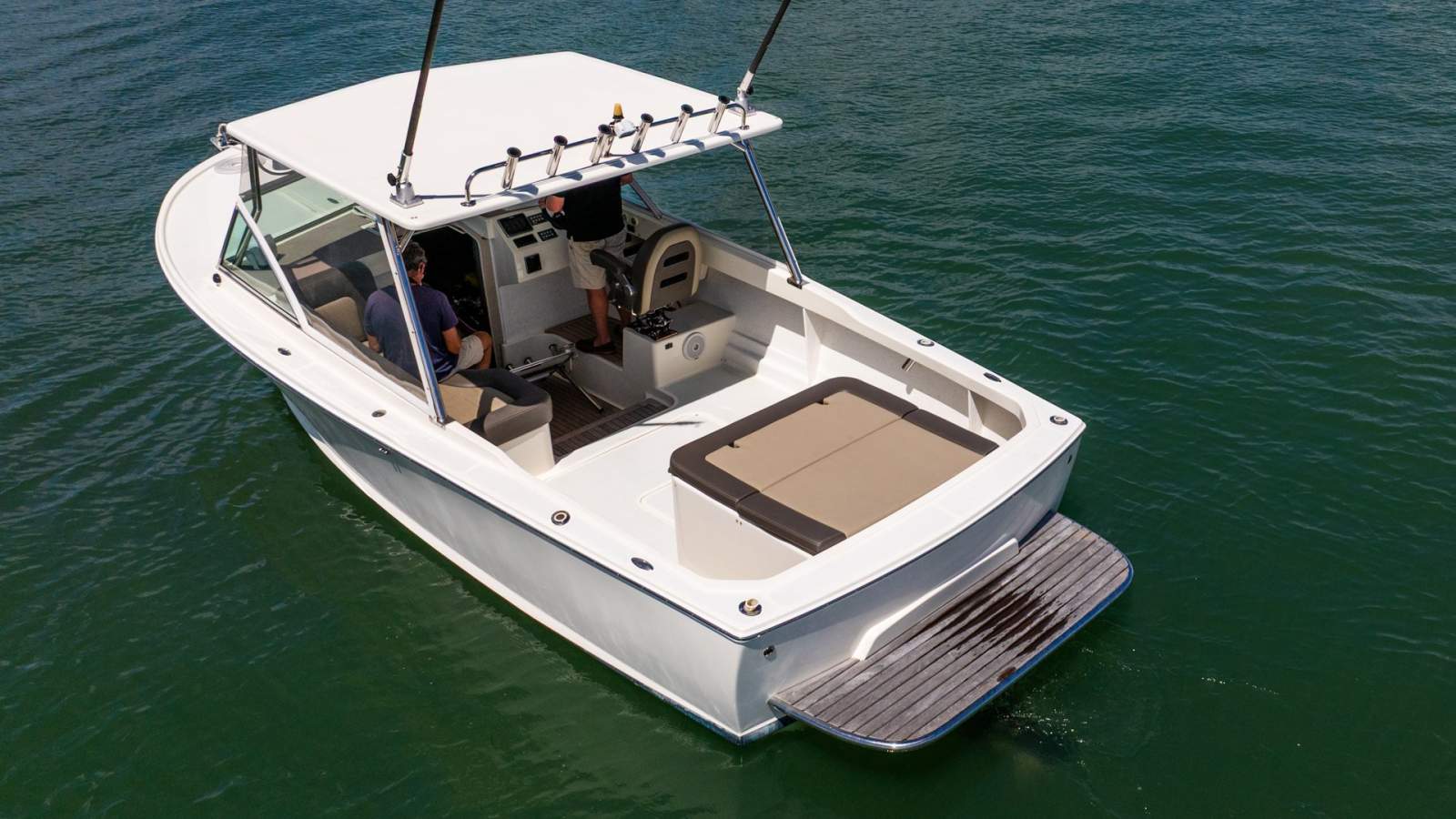 At the stern, a teak and stainless swim platform provides the perfect place for a swim or relaxing on warm summer days.