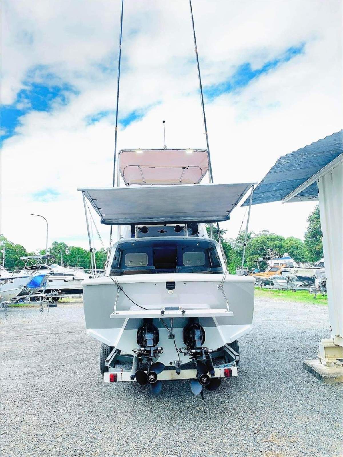 FISHING GEAR - LEE's 25ft game fishing outriggers, OCEANSOUTH heavy duty XL bait board (new), SALTY CAPTAIN XL insulated catch bag (new), telescopic boat hook (new), gaff fish hook, 80L DOMETICcool icebox (new), 120W solar panel with MPPT Regulator, ; LECTROTAB 9"x18" stainless trim tabs + actuators (new), Dual 4" 12v lithium fans (new),
