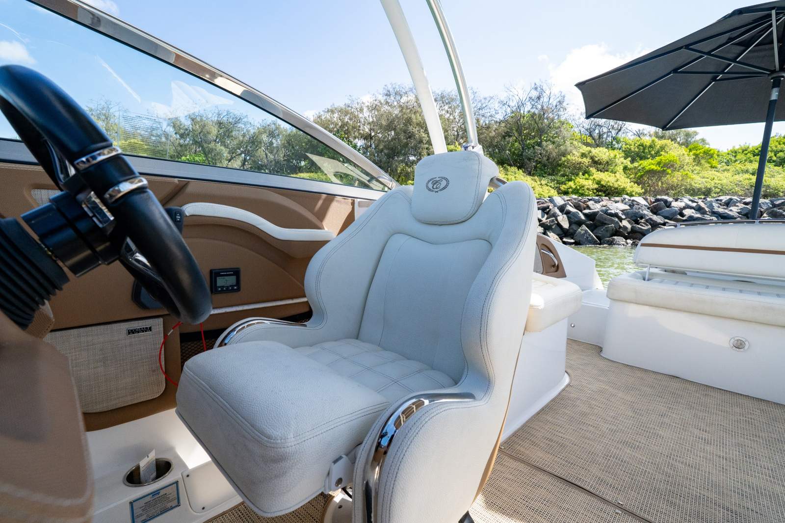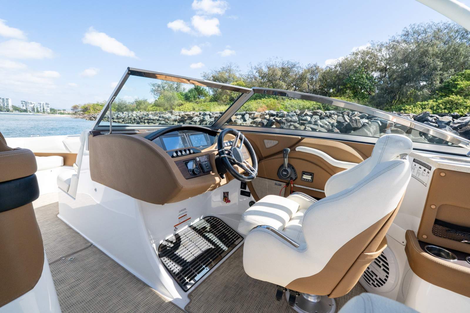 Powered by a BRAND NEW Volvo Penta V8 380hp Duo Prop, this vessel offers effortless performance, smooth handling, and exceptional control whether cruising Broadwater waterways or heading offshore on a calm day.