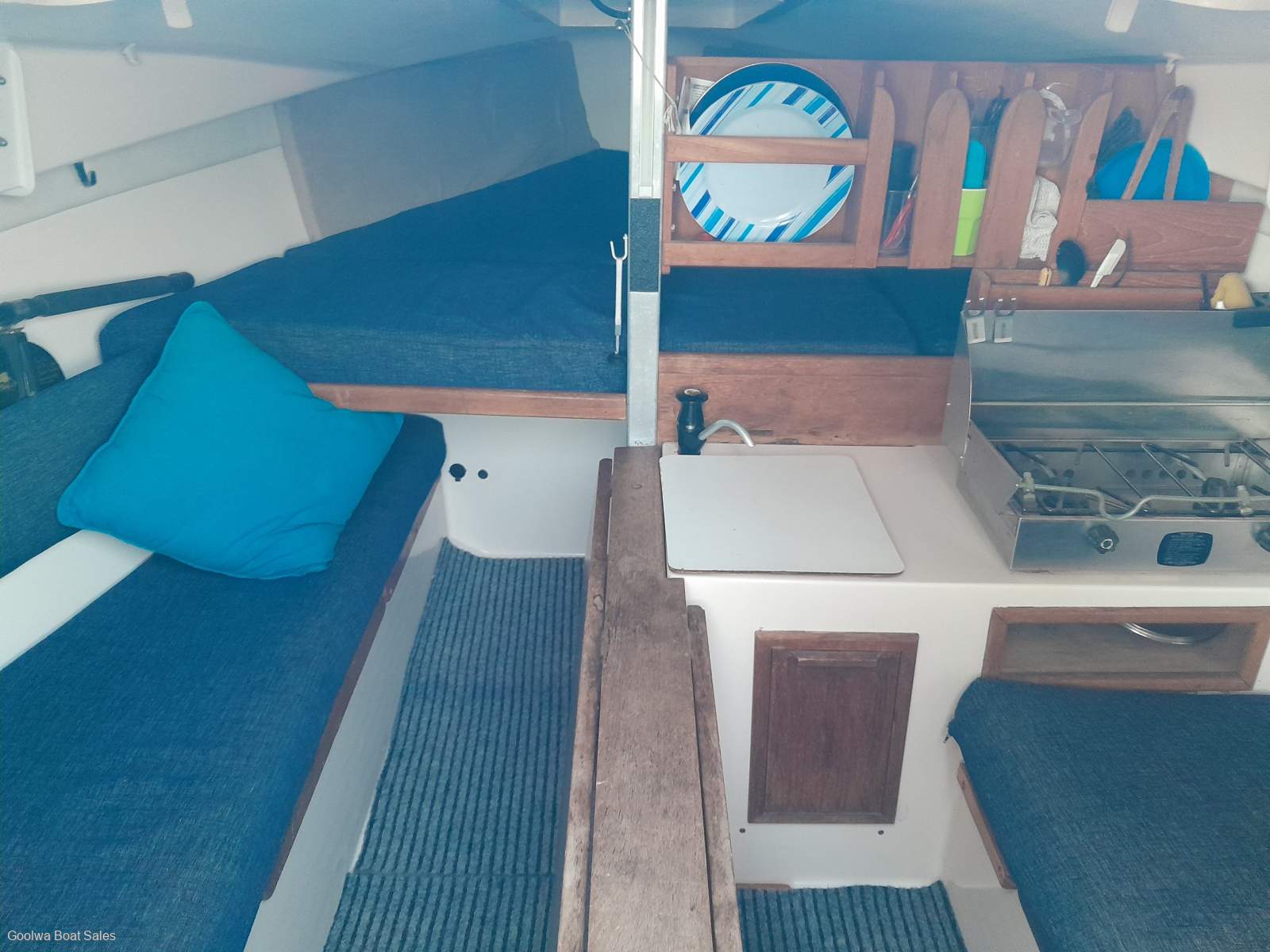 This boat has everything : B&G wind instruments, Lowrance GPS, Lowrance fishfinder, furling headsail, 2 burner metho stove, GME sound system, GME 27 meg radio, GME VhF radio, huge solar panel and VCR, Raymarine autohelm.