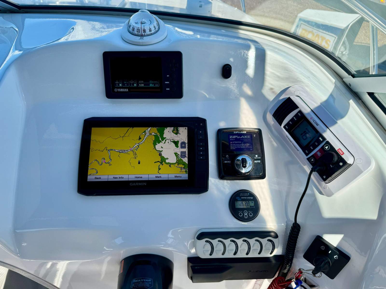 Along with engine instrumentation, switching, charging points and the Zipwake controls that assist in providing a better ride in choppy conditions controlling lateral roll.