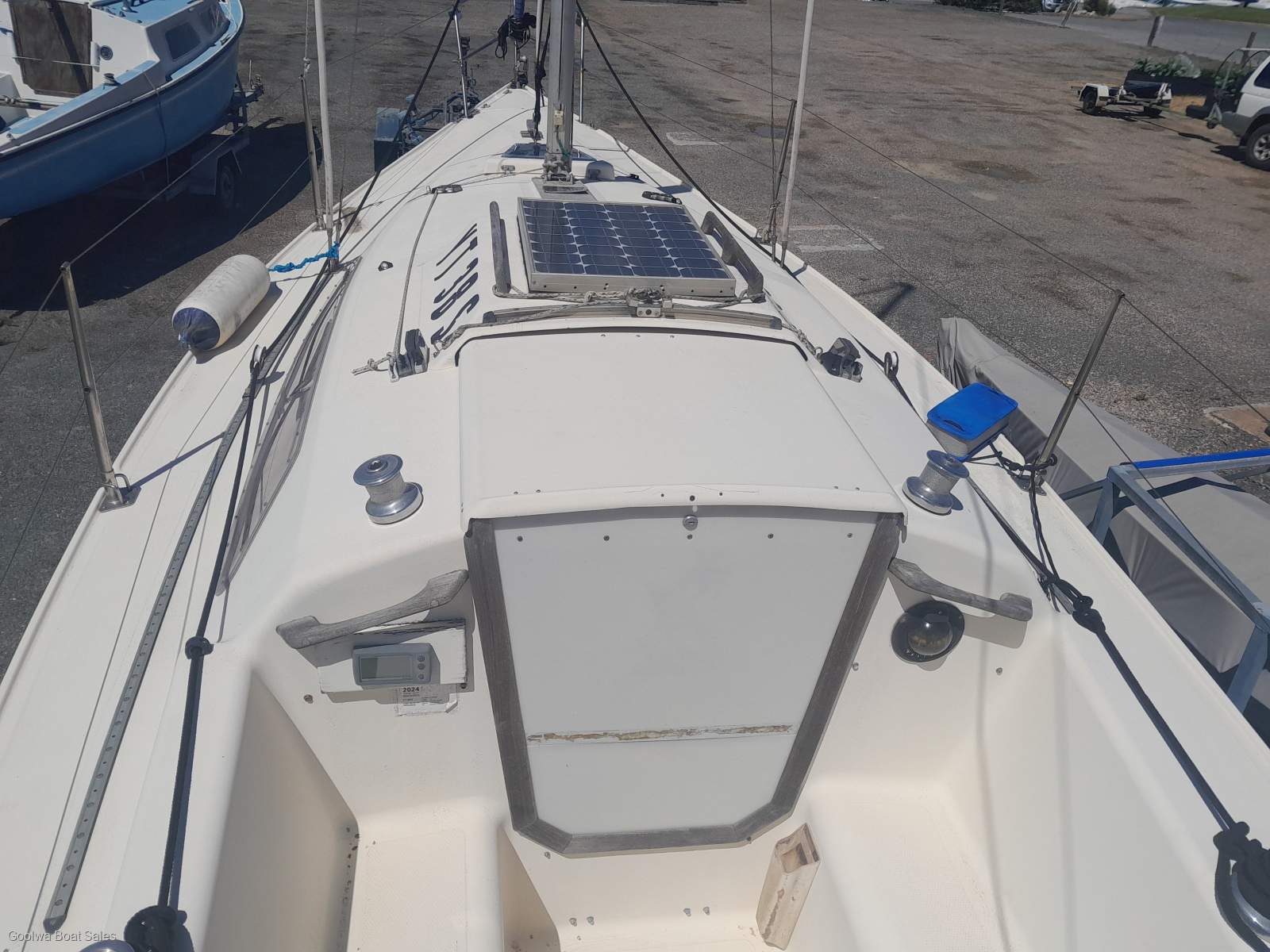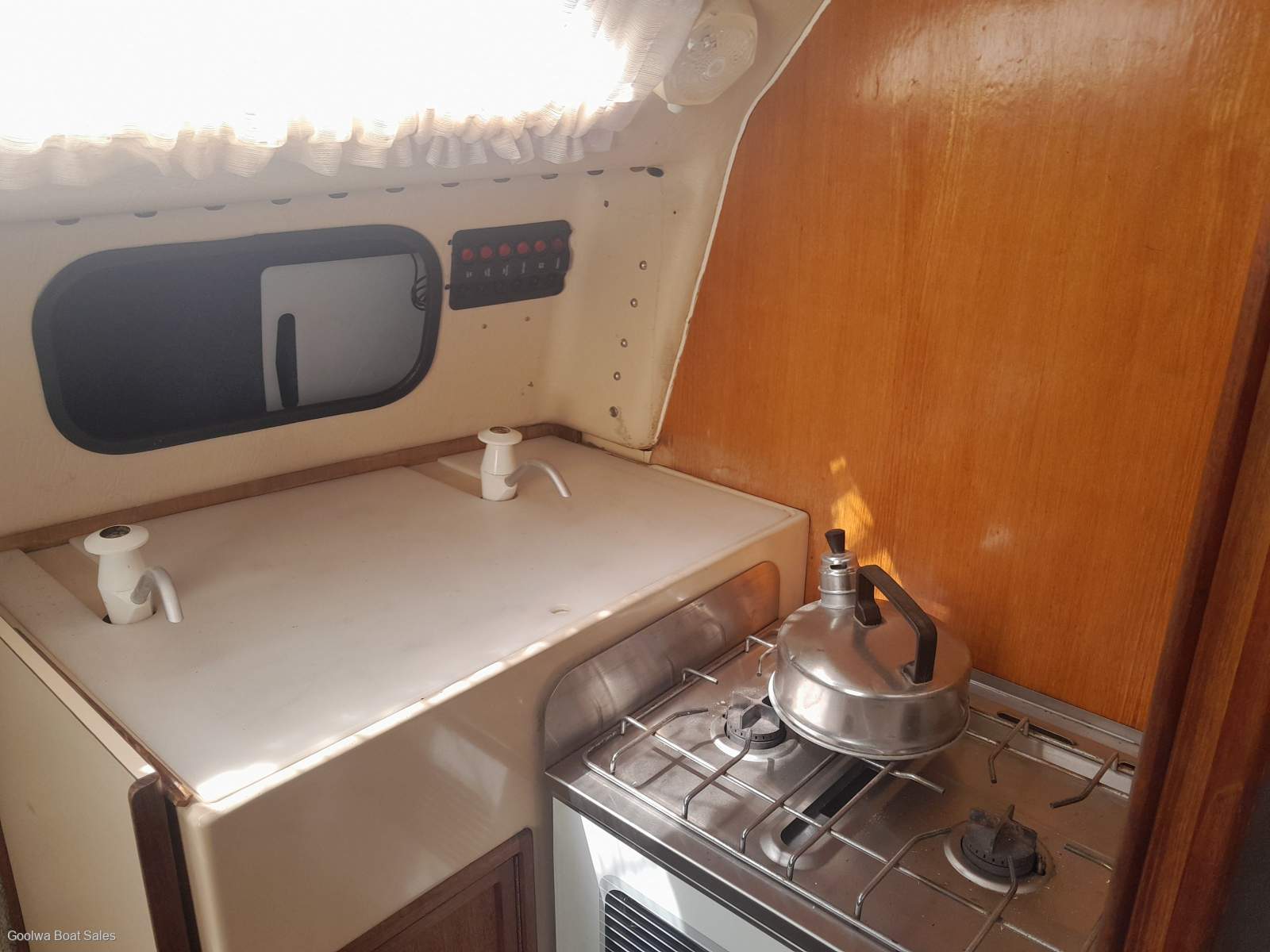 The Flinders was very much a luxury maxi trailer sailer in the day, offering enclosed head, large private v berth, large quarter berths and a GRP headliner, gas oven/stove, large sink, 27 meg radio, electric keel lift.
