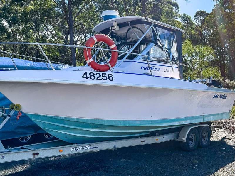 There is plenty of storage onboard thanks to the forward cabin with generous space throughout. The non-slip flooring, ample lighting, and smart layout design provides a smooth, comfortable and safe ride en-route to your destination. This vessel comes well-equipped with a solid 2012 Magic Tilt dual axle aluminium licensed trailer.