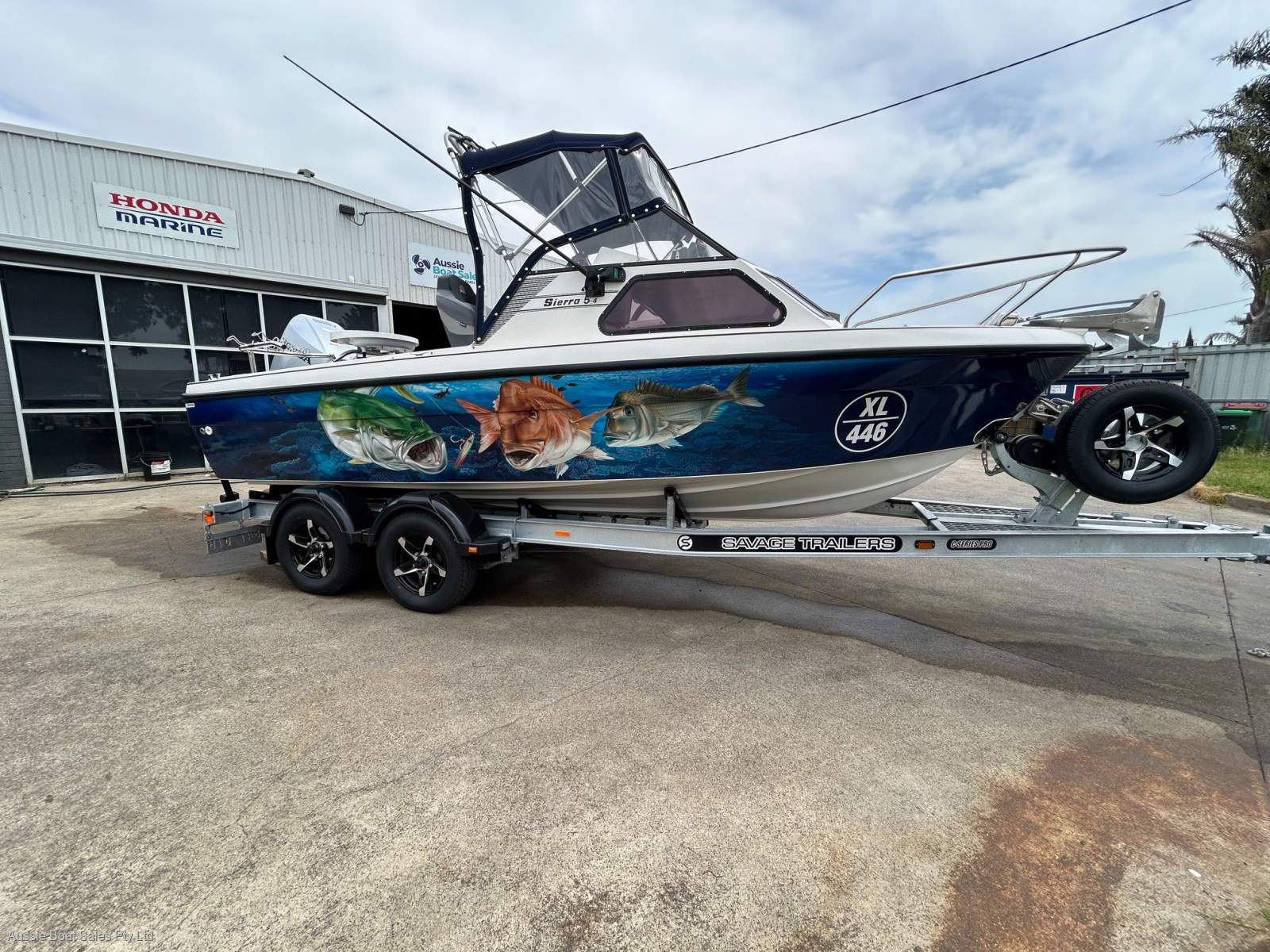 Kingfisher Sierra 5.4 Cuddy Cab, 2024 Honda 135 HP outboard with only 40 hours use, new Savage I- beam trailer with spare, mags and mesh walkway. This boat has had serious money spent on it over the last few years with stringers, floor and transom all replaced, a total re-wire and re-plumb, new electronics, new upholstery, canvas and clears and a bunch of extras that make this a real winner for the price. The transom has been redesigned to incorporate 2 x live bait tanks and sealed battery compartments, the fuel tank is new, as is every hose and clamp in the fuel system - seriously there is not 1 cent to spend on this boat - it is ready to get you out and amongst it. Extras include:- Furuno FCV 800 fishfinder, Lowrance Hook 9 GPS unit, GME VHF radio, GME AM/FM radio, Savwinch SS1000 anchor winch, bow sprit and anchor, McQuarrie fabrications bait board, snapper racks, vertical rod racks and bilge mesh, rocket launchers, cockpit work lights, additional cockpit lighting, gunnel rod storage, saltwater deck wash, twin batteries with isolator, bimini, clears and storm cover, deluxe helm seats and more! This whole package is wrapped in an awesome fish graphic that will turn heads at the ramp; and for those of you in the know - the Kingfisher 5.4 hull is considered one of the best hulls going around. Sure, your Haines 565's and V17's are good, but you will pay heaps more for the name and believe me you won't get a better combo of rough water ride and stability for the extra dollars. This is a serious boat, and it deserves your attention.