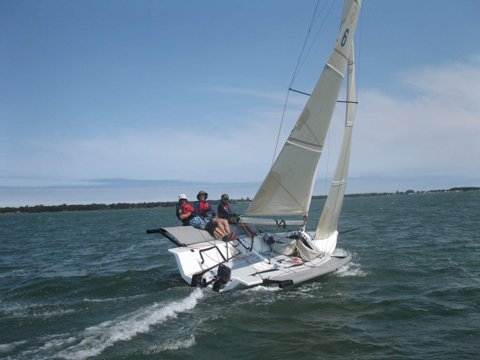 Sails with 3 in light conditions, 4 when the breeze is on.