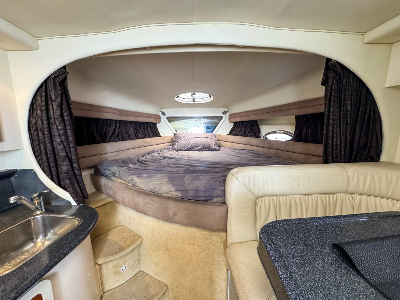 The spacious cockpit offers a comfortable and functional area for entertaining or relaxing with plenty of seating around the dinette, a BBQ and swim platform to cool off. Whether hosting friends or spending a quiet afternoon on the water, the layout provides good flow and usability throughout.