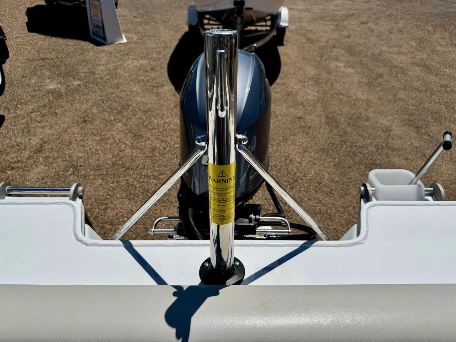At the time of order, a number of factory upgrades were chosen including the engine HP. Rather than a standard 50Hp, the Yamaha was upgraded to a 60Hp that effortlessly pushes 2 adults and the days gear economically. Further the trailer was upgraded with a swing away draw bar as pictured to allow the package to fit into the garage out of the weather when stored.