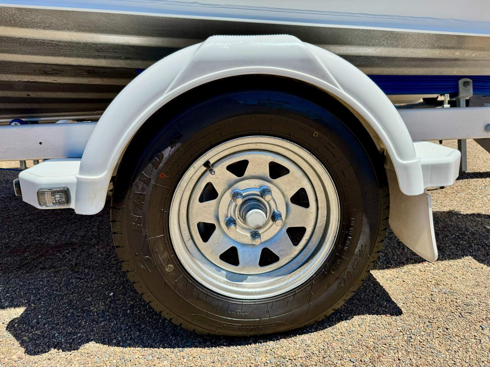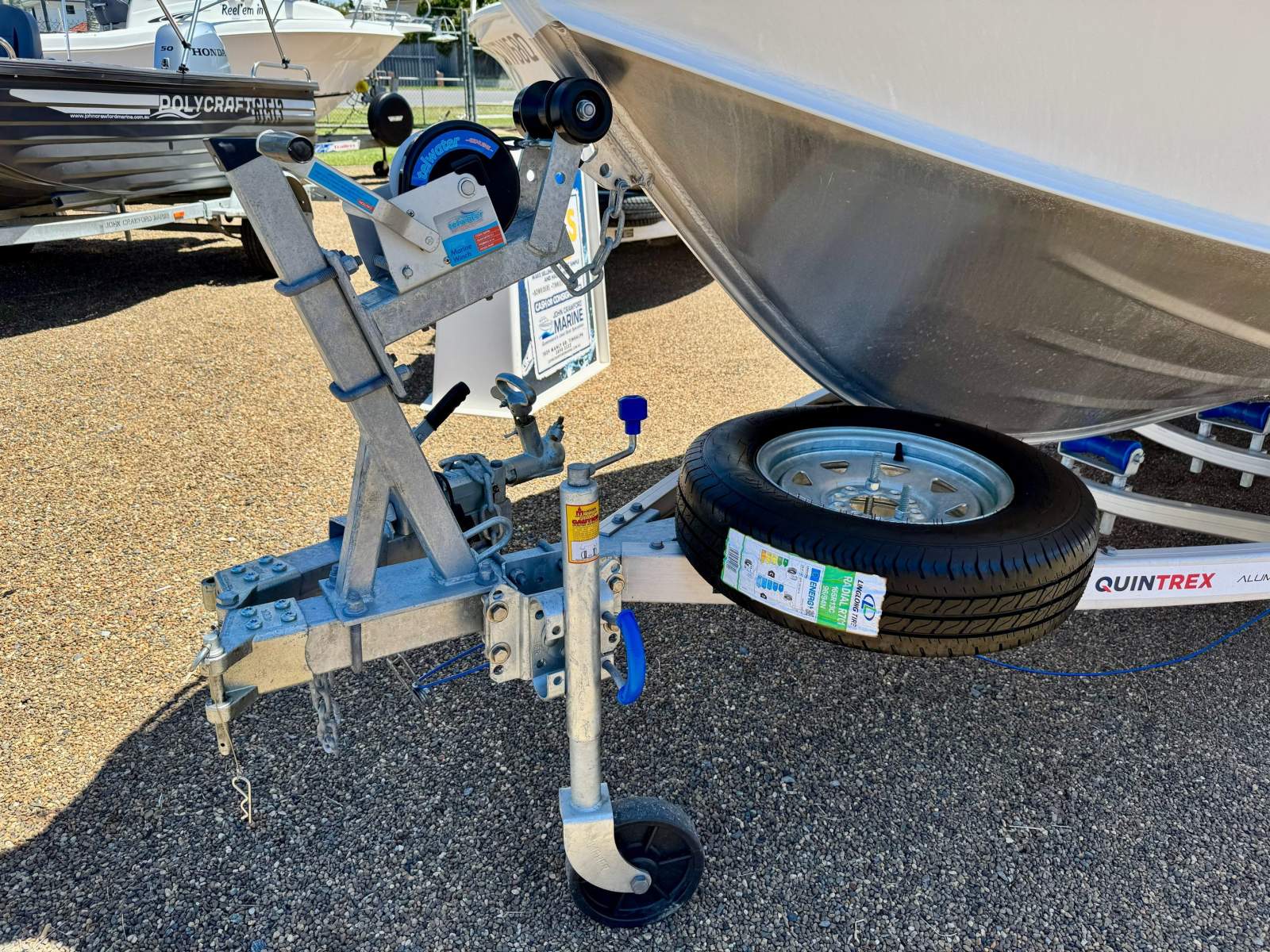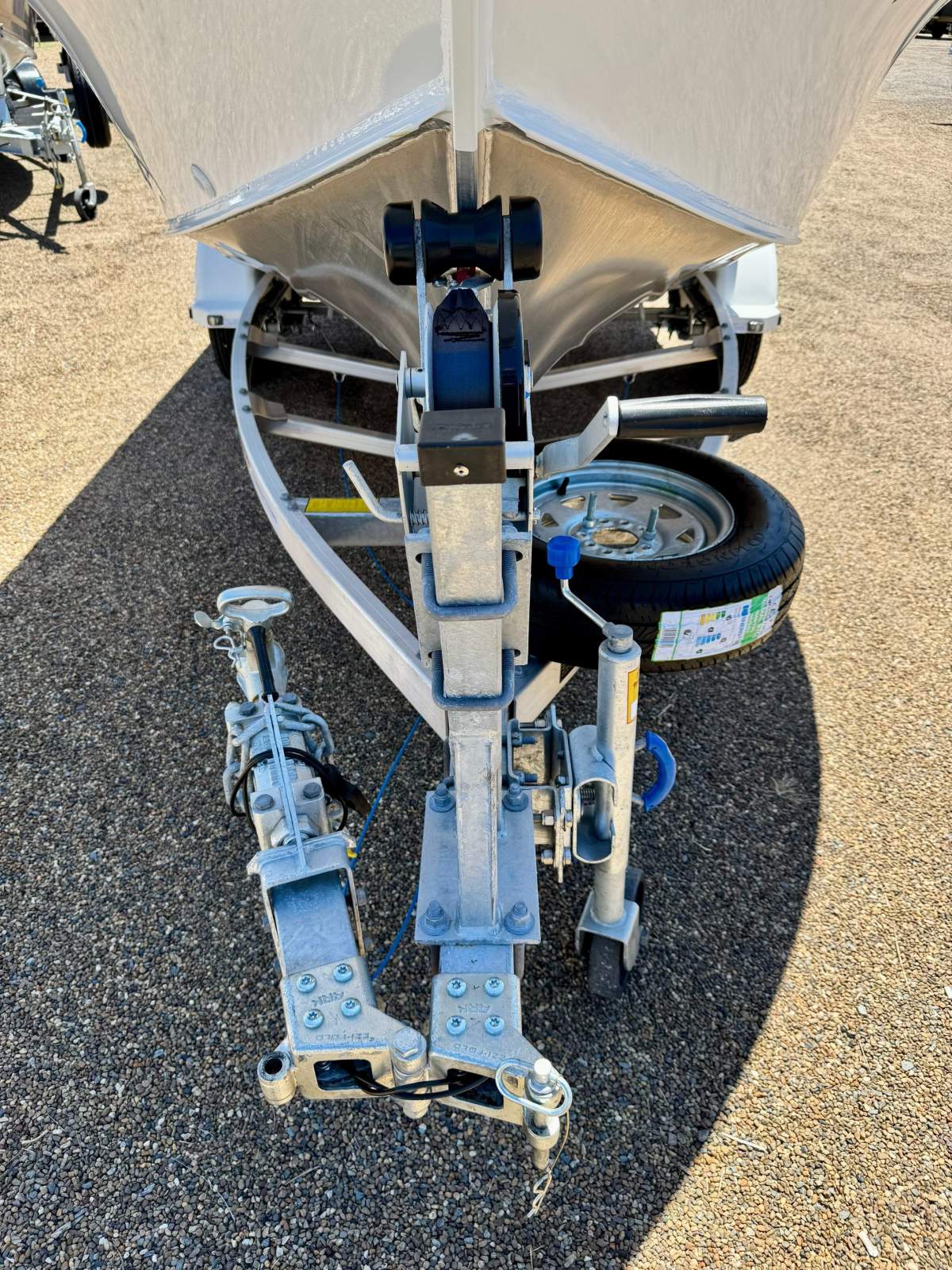 The trailer is fitted with mechanical override disc brakes and is well dressed with white plastic mud guards fitted with side clearance lights and comes with LED submersible trailer lights, tie down straps and a spare wheel.