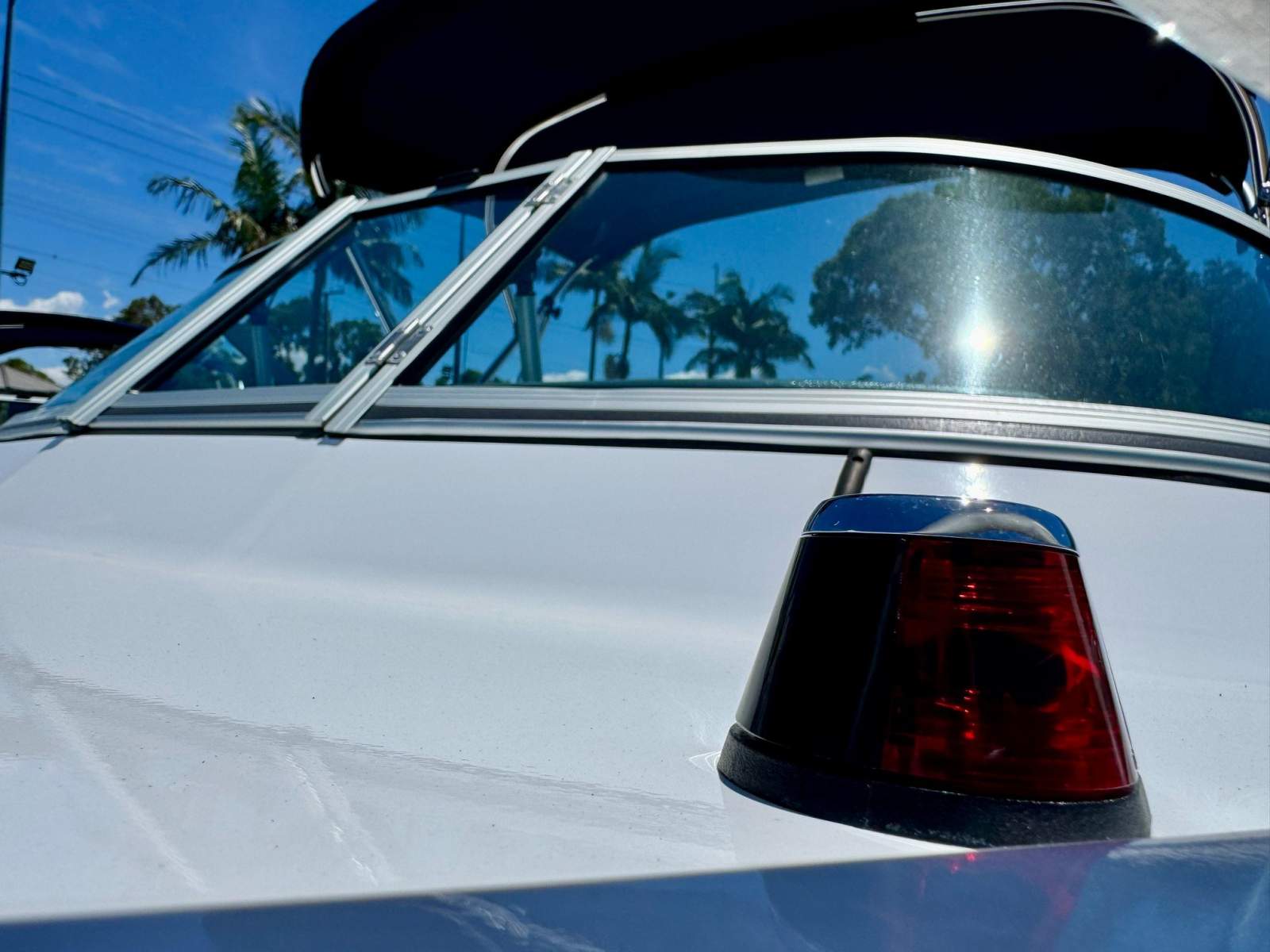 Overhead a quality 3 bow sports bimini offers reprieve from the sun and easily folds down into the storage sock if wanting to reduce the overall height for storage or towing down the highway.