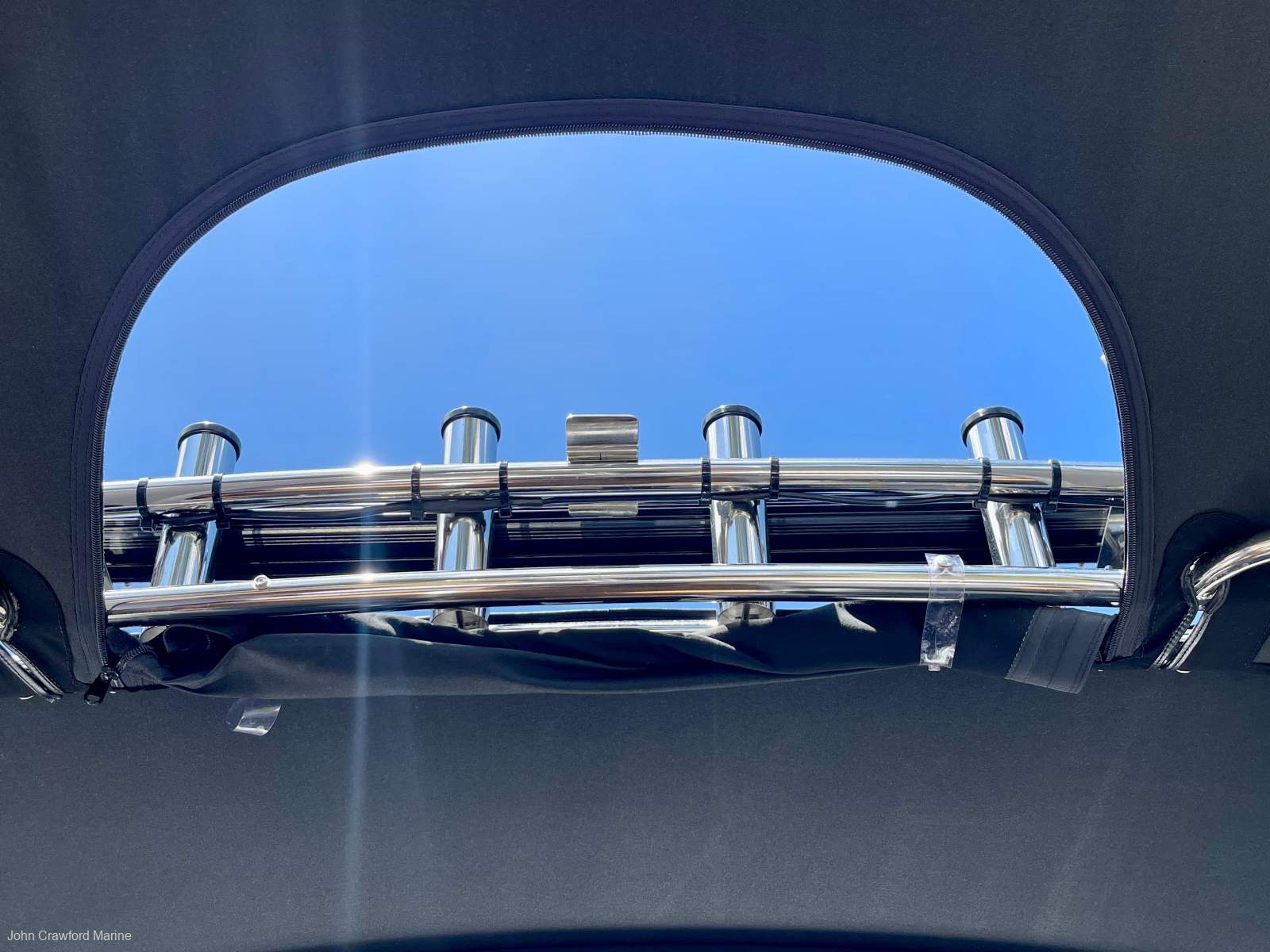 The rig was delivered new in July 2023 and upgraded throughout the order from the standard 4 cylinder 150Hp up to the top of the range and max power with a 225Hp V6 Mercury with 124 recorded hours use. Fitted with a stainless-steel prop, steering is made light by way of fitting the Hydrive steering system and range is assured with the underfloor 200l fuel tank.