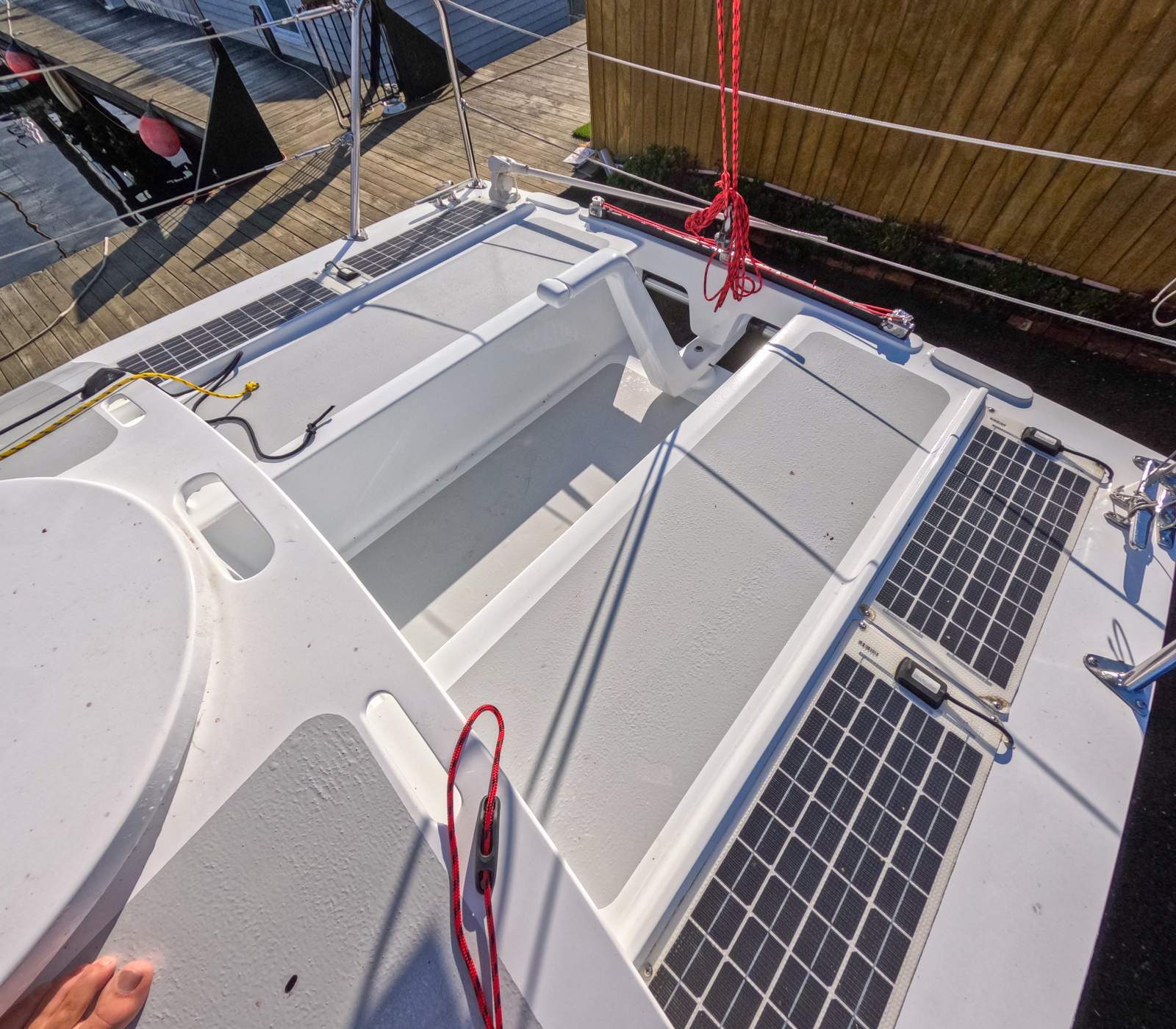 "Myska" is an impressive example of the design. Having been built by the owner, and then finished to a very high standard by Able Marine, it is ready for then next owner to add sails and take it on its first adventure! Very well equipped, this package includes a QUALITY MACKAY TRAILER, SOLAR PANELS WITH REGULATOR, TWO LITHIUM BATTERIES FOR EXTENDED CRUISING, PORTABLE TOILET, VHF RADIO, DEPTH AND SPEED TRANSDUCERS, TACTIC WIND INSTRUMENT, PRODDER FOR A CODE 0, HARKEN WINCH AND QUALITY DECK GEAR, the list goes on!