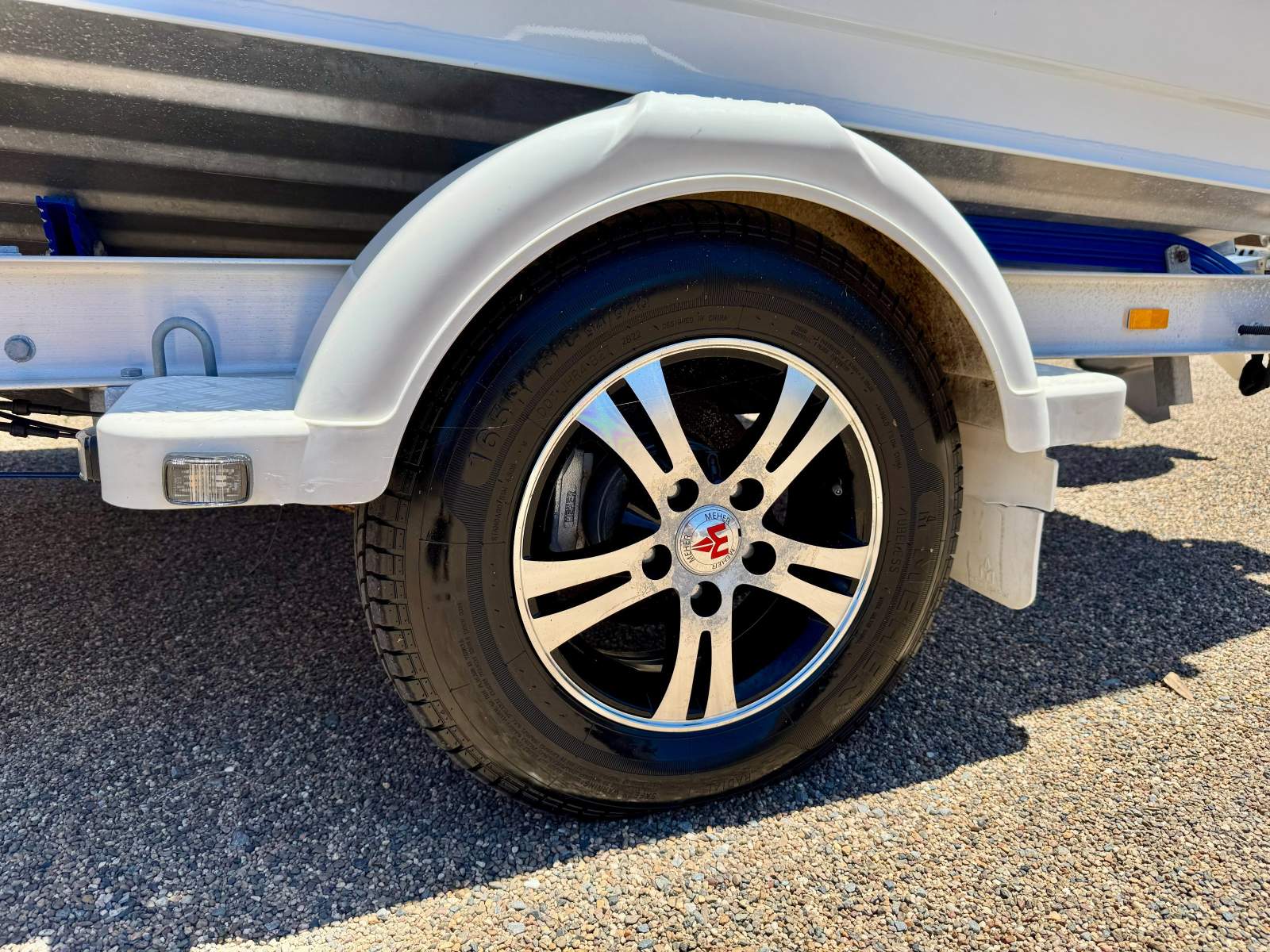 Trailering is made easy as the rig sits atop a factory fitted Stacer Alloy TEL1400B13 single axle, V loader trailer that marries to the hull like a glove. Launching and retrieving is made simple with the trailers design incorporating a "V-Load" system and the upgraded option of the stainless steel "Latch-n-Catch" system fitted as pictured.