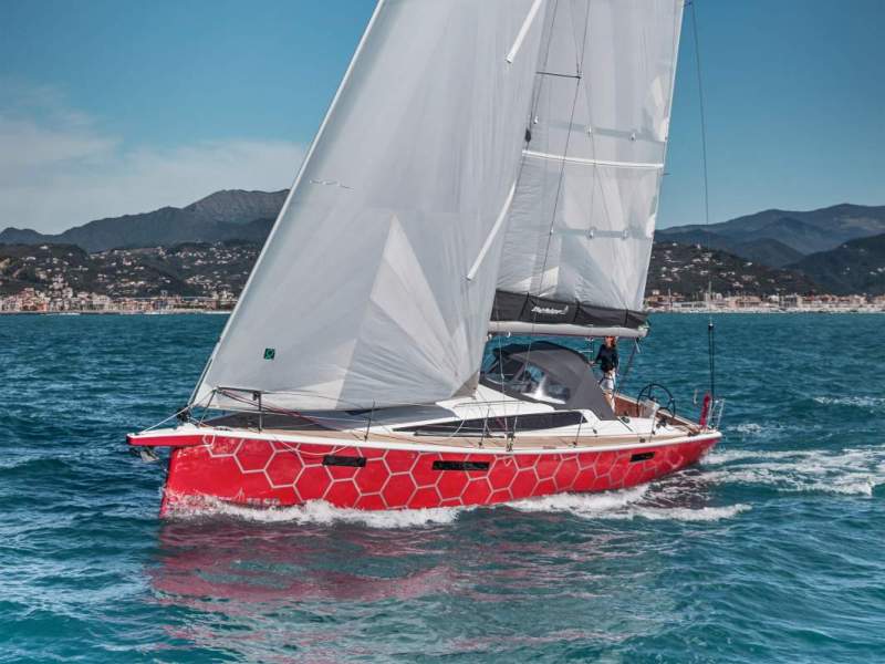 Its lightweight construction, maximised sail area and refined hull shape deliver outstanding speed and responsiveness, while maintaining the safety, balance and control expected of a premium offshore-capable yacht.