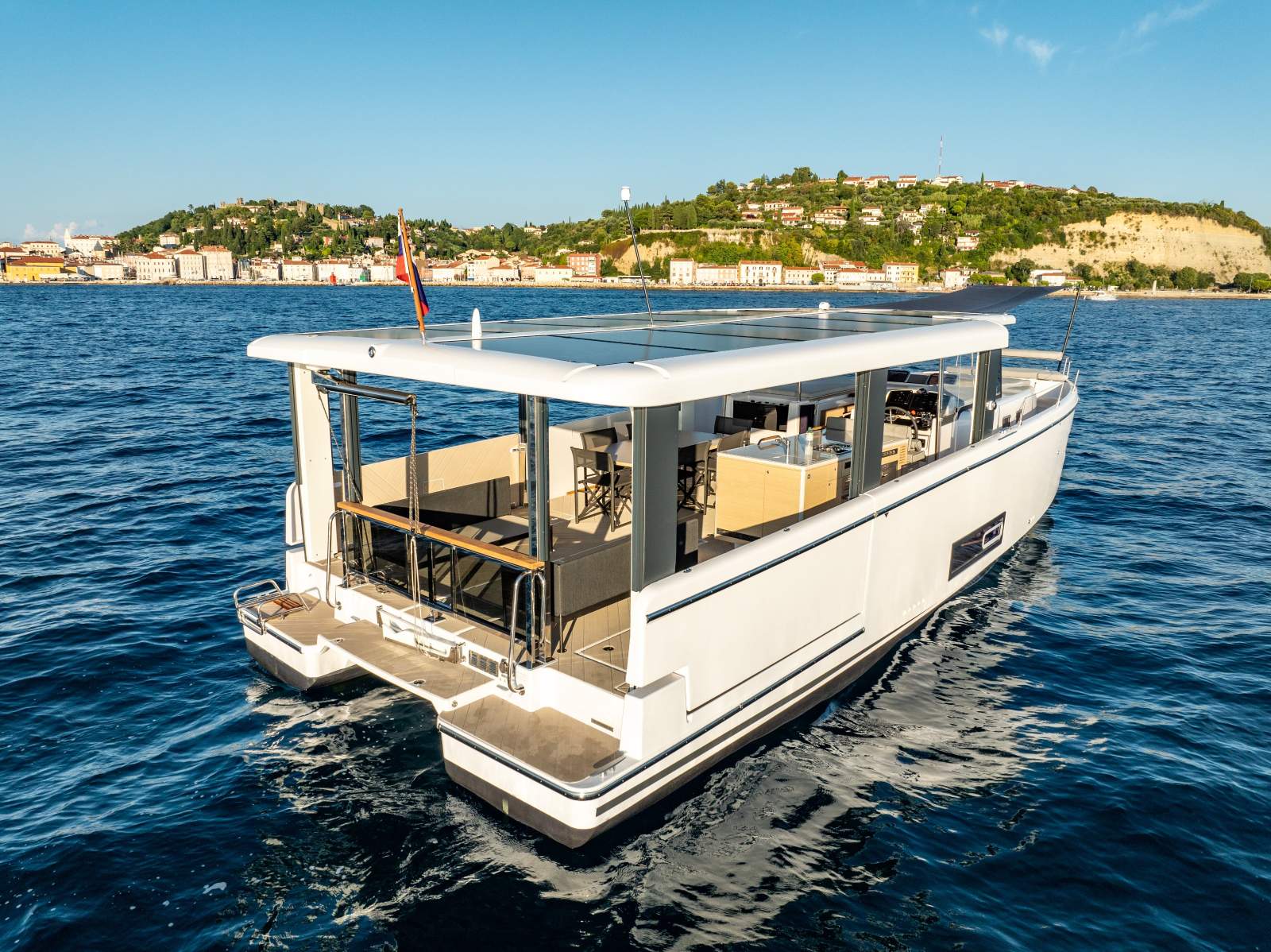 - Hybrid and electric capability supported by a 30 kWh battery system with integrated solar panels, delivering efficient, low-noise performance and extended time on the water.