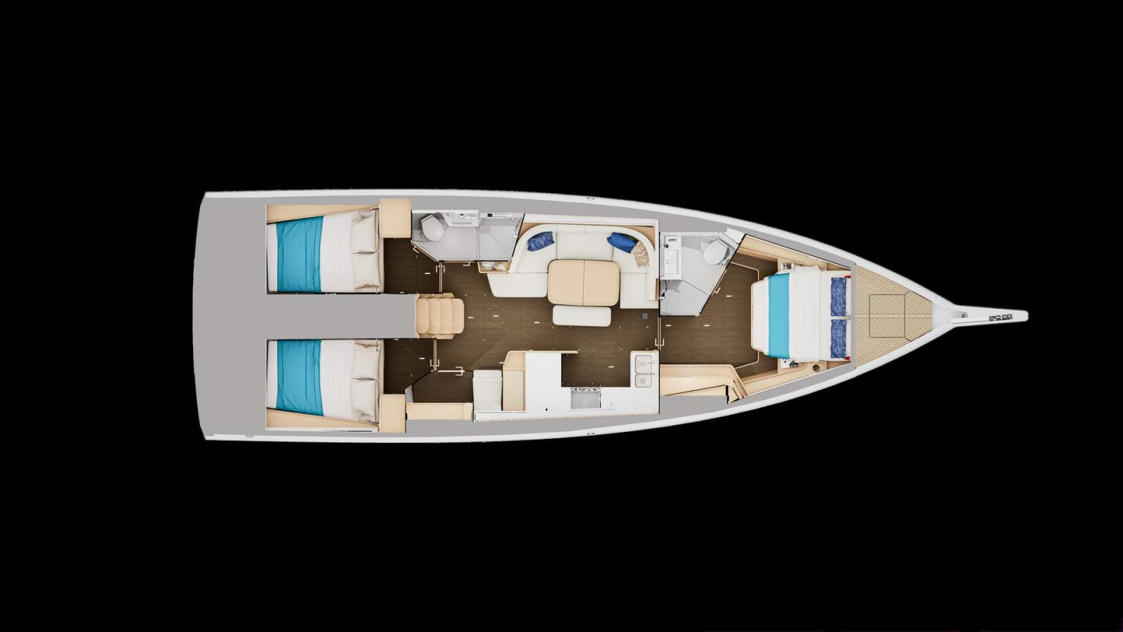 Elegant and seaworthy, this 45-foot sailboat combines power, comfort, and peace of mind. Easy to handle and safe in all circumstances, she features a full package for each person on board: sensations at the helm, an inviting atmosphere in the cockpit, and well-being on the interior.
