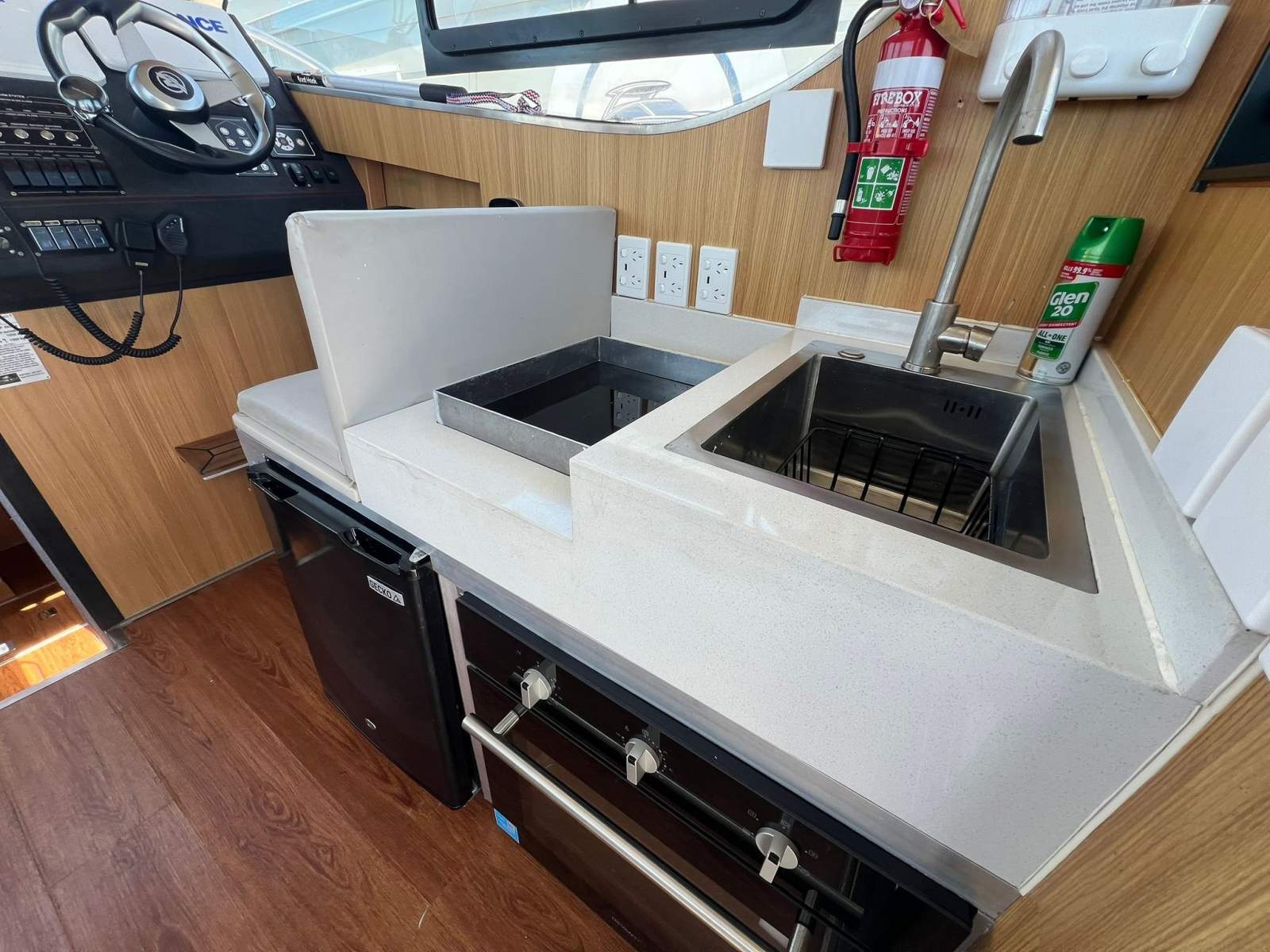 Inside, the accommodation is surprisingly generous, comfortably sleeping up to six guests with a welcoming dinette and galley, making extended trips or overnight charters a pleasure. A superior electrical system with solar charging, inverters and a robust battery setup ensures reliability and efficiency, reducing operating costs and downtime.