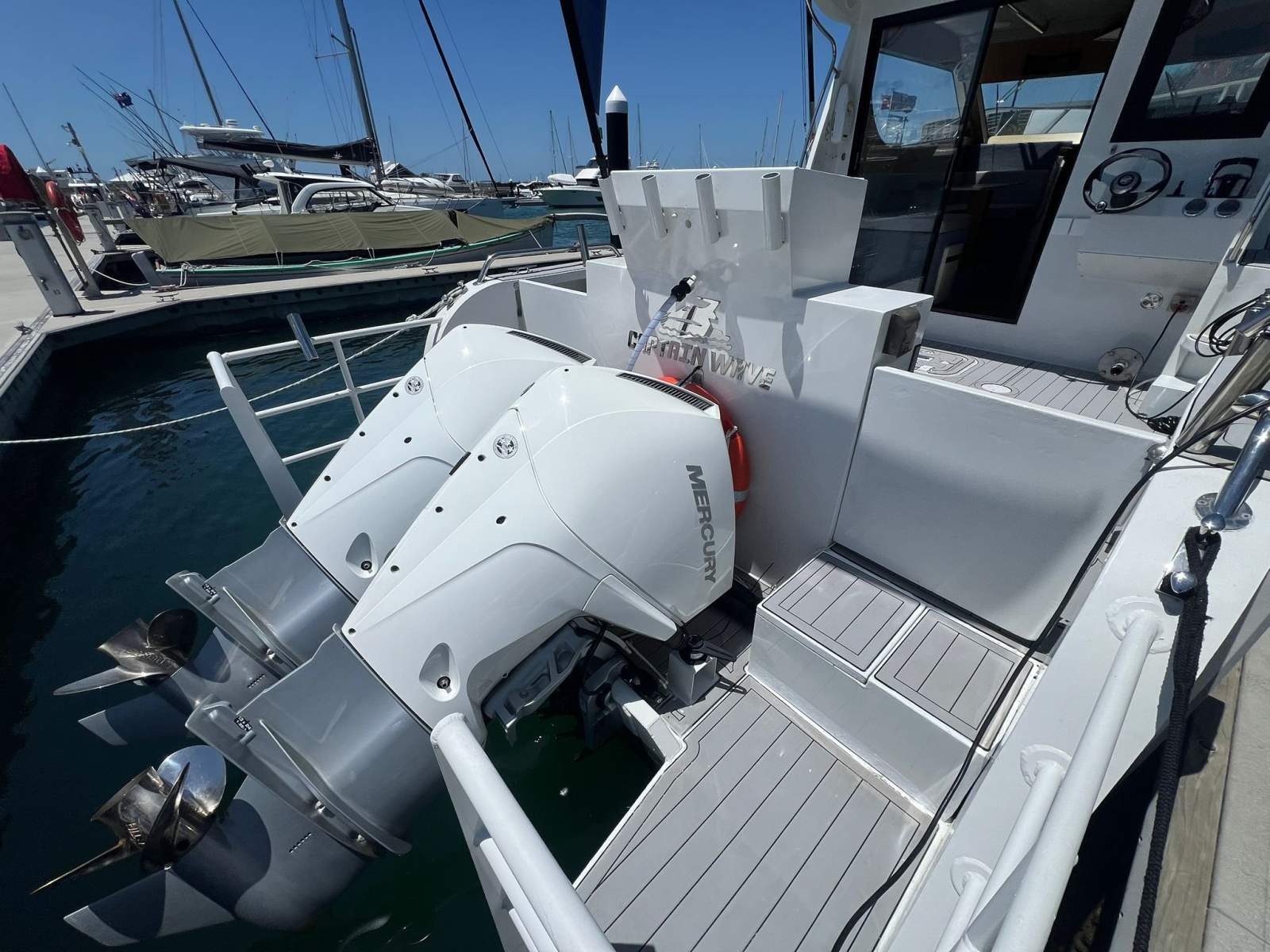 Powered by twin 225hp Mercury four-stroke outboards with very low hours, this vessel delivers strong performance with minimal maintenance for a boat of this calibre. Features such as bow thruster, cockpit helm, radar, electric anchor winch, and full survey safety equipment make docking, manoeuvring and daily operations effortless.