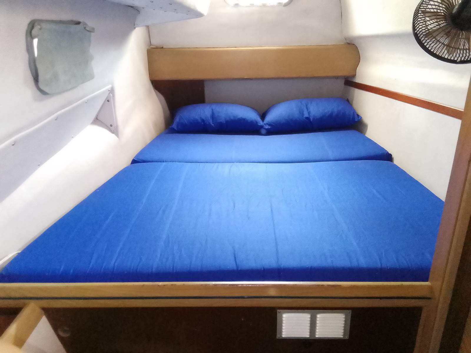 4 cabins, 2 double, 2 large single. All mattresses recovered 2026