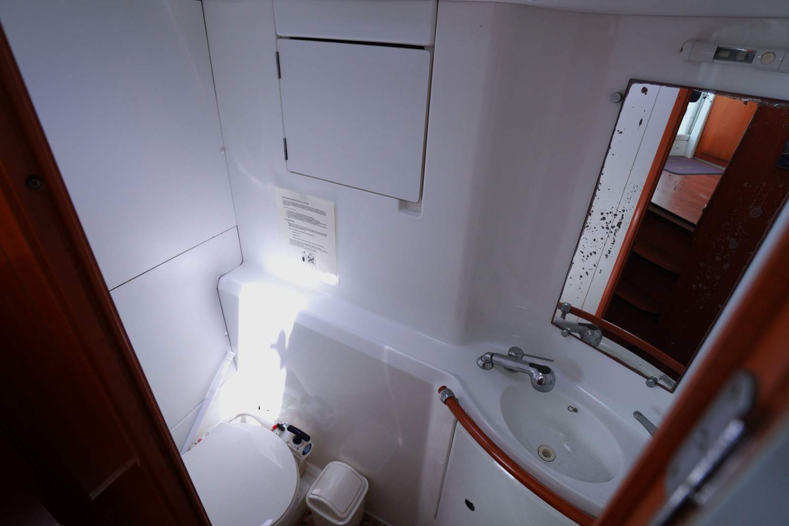 Rinascere is offered with a functional sail and sail bag showing signs of age and no tender is included. This has been reflected in her market positioning.