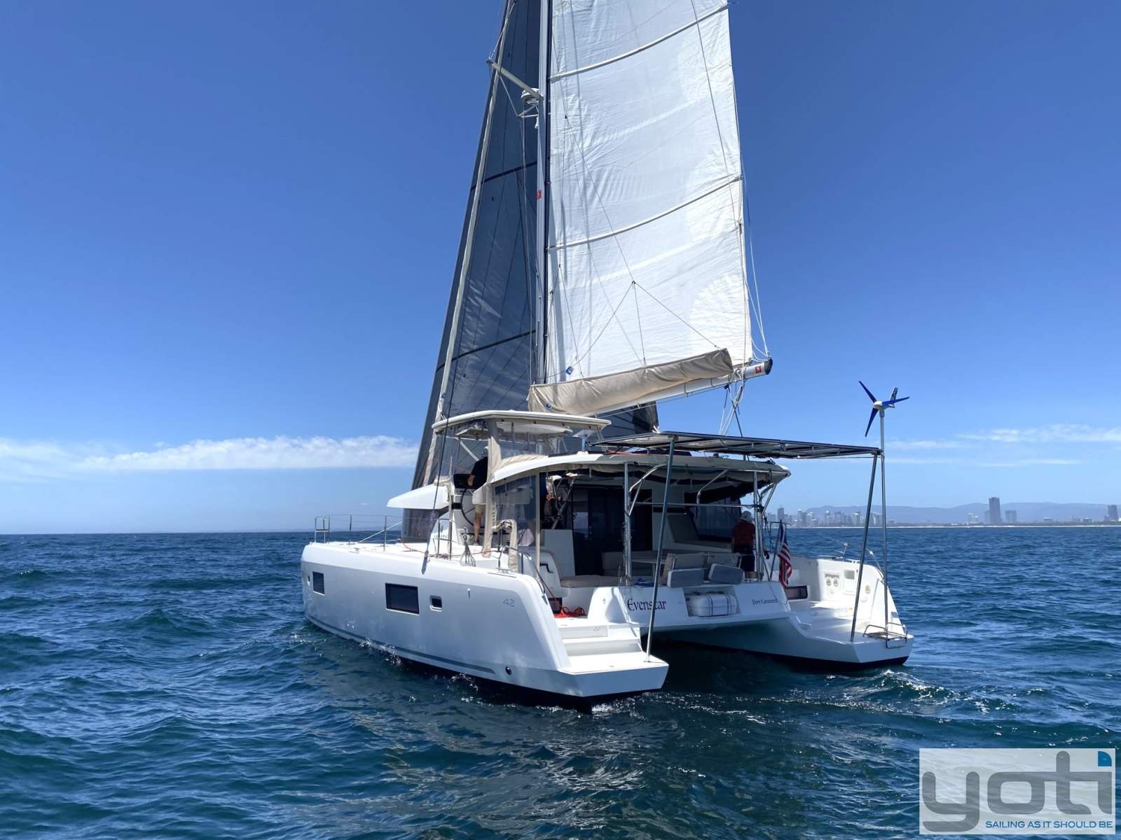 'Evenstar' is a well-specified Lagoon 42 (2022 model, 2021 build), presented in very good condition and equipped with the upgrades every cruising buyer seeks: Lithium batteries, abundant solar, wind generator, full B&G electronics suite, Starlink, Iridium, watermaker, downwind sails, forward depthsounder, recent antifoul and polish, plus a near-new tender.