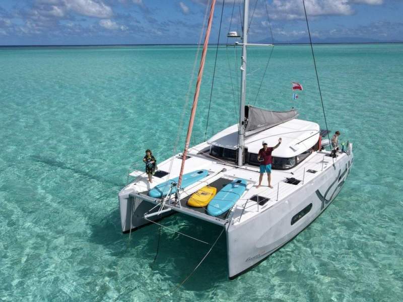 Sail Tahiti presents today Mahana VI, Leopard 384 equipped in a 4-cabin version, air-conditioned, with almost new rigging and engines and the possibility to set sail quickly ! Initially offered for charter with the Moorings in the Leeward Islands, the boat was bought by its current owners who took care to refit a number of essential equipment: