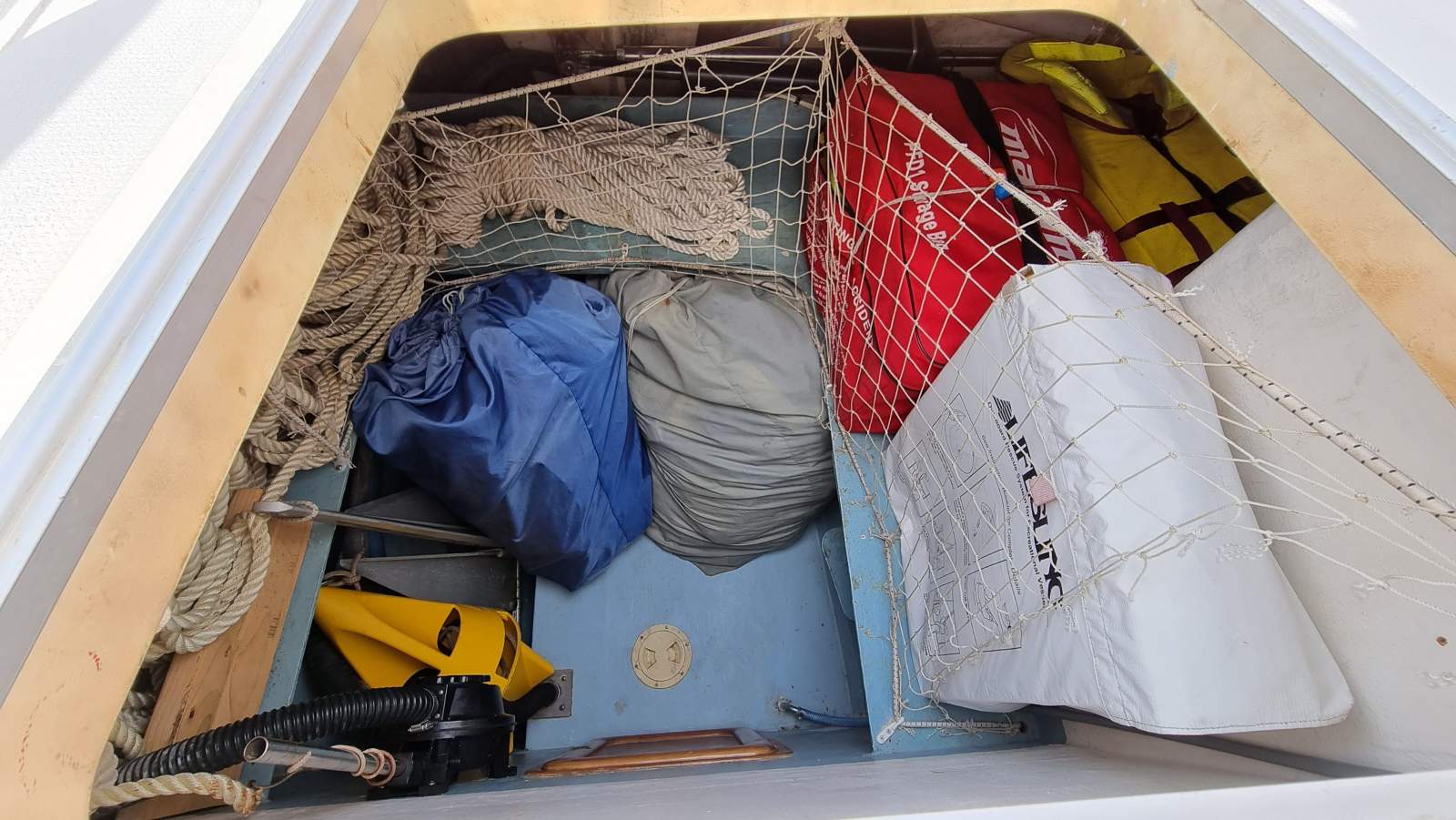 Para anchor c/w bridle, Drougue MOB life-ring, MOB life-sling, Dan Buoy, Emergency tiller.