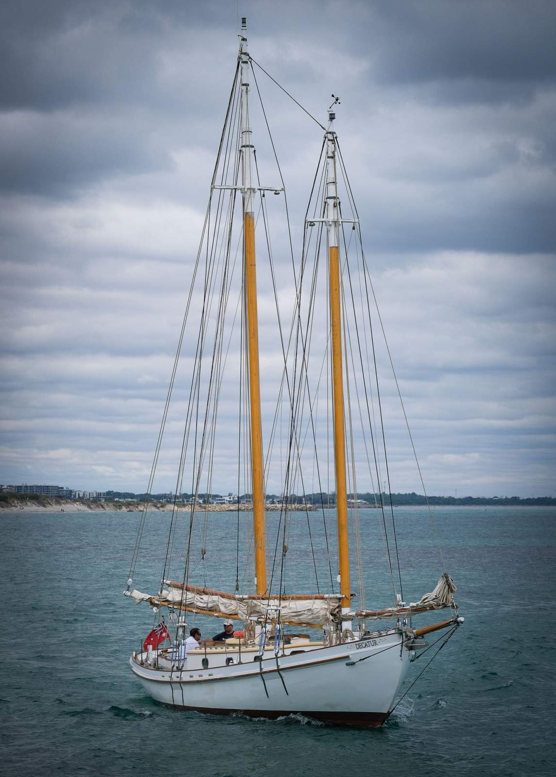 Decatur was built by master shipwright Keith Allen with the assistance of his daughter Bernadette Hedger. The hull is carvel planked and constructed from highly prised Huon Pine that is copper fastened and caulked with Oakum and cotton, with Scented Maple and Gympie Messmate steamed ribs and sawn frames of New Guinea Rosewood. The decks are constructed from White Beech, laid over dual layers of plywood and sheathed in Dynel cloth to ensure long-term watertight integrity and durability. The keel is solid and very durable quarter sawn spotted gum. The masts are Silver Durgong and the gaffs and booms are Oregon.