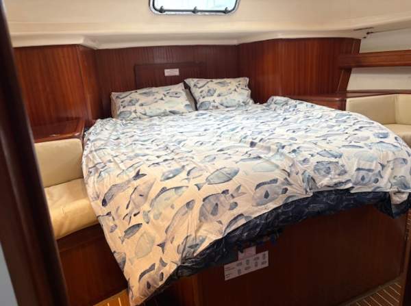 Below deck, the yacht offers the volume and comfort that Bavaria is known for with a 3-cabin configuration. The saloon is spacious and well-ventilated, with generous natural light. Cabins are well-proportioned and comfortable particularly the large aft owners cabin with ensuit.