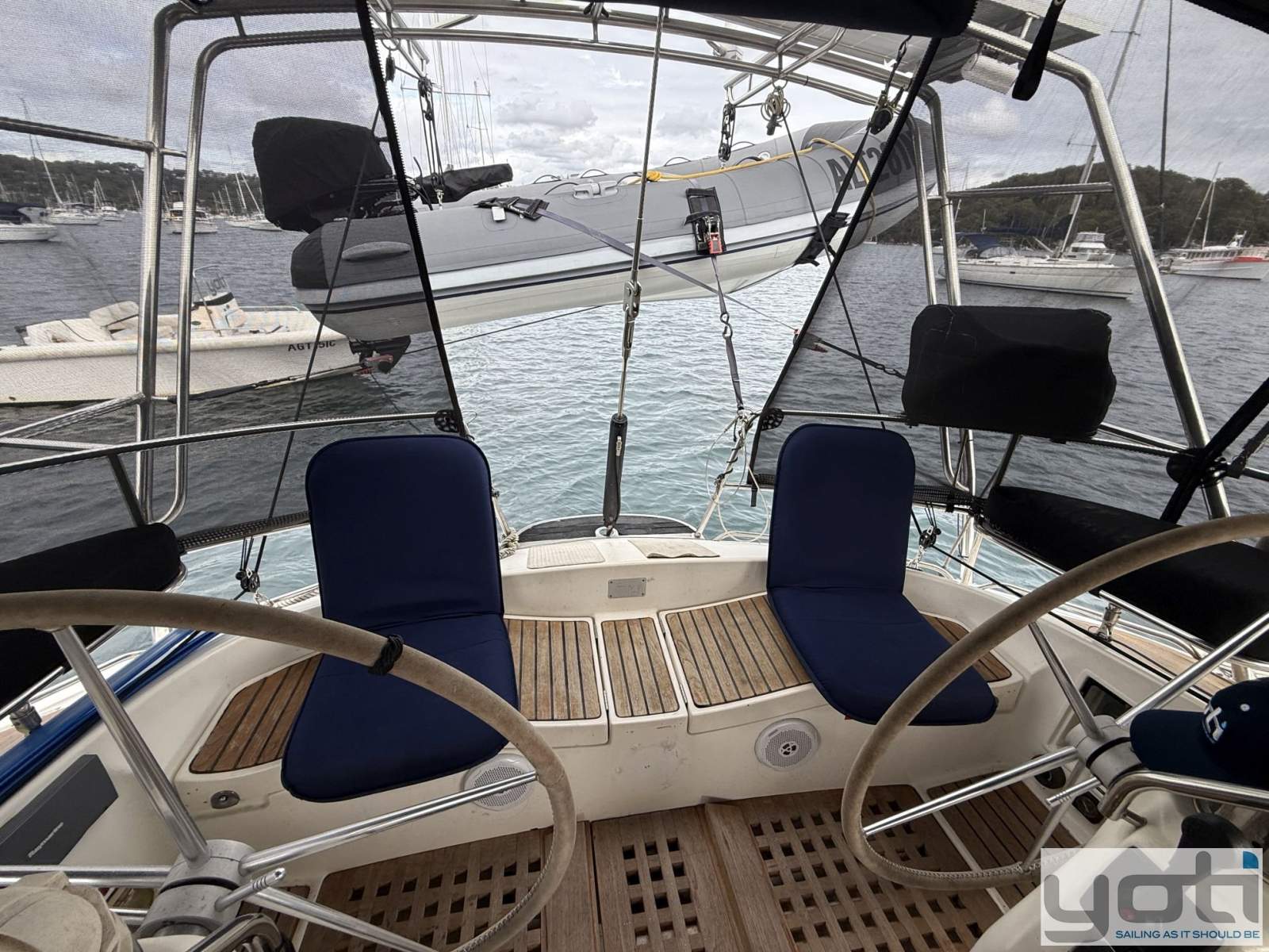 Ensign with flag pole at transom. Drop down boarding / swim platform at transom. Fenders. Winch handles. Custom corner cockpit seats (new 2023) with S/S frame and cushions. Cockpit cushions. S/S BBQ mounted on transom. Lifeline opening gates port and starboard. Fenders. Mooring lines.