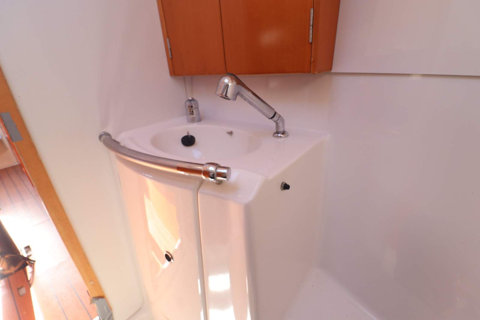 Double berth to starboard, single to port. L shaped galley to starboard, chart table to port, 2 full length saloon berths and a fold down table. Oversized head in the bow. Lee clothes for the saloon berths with custom shelves above.