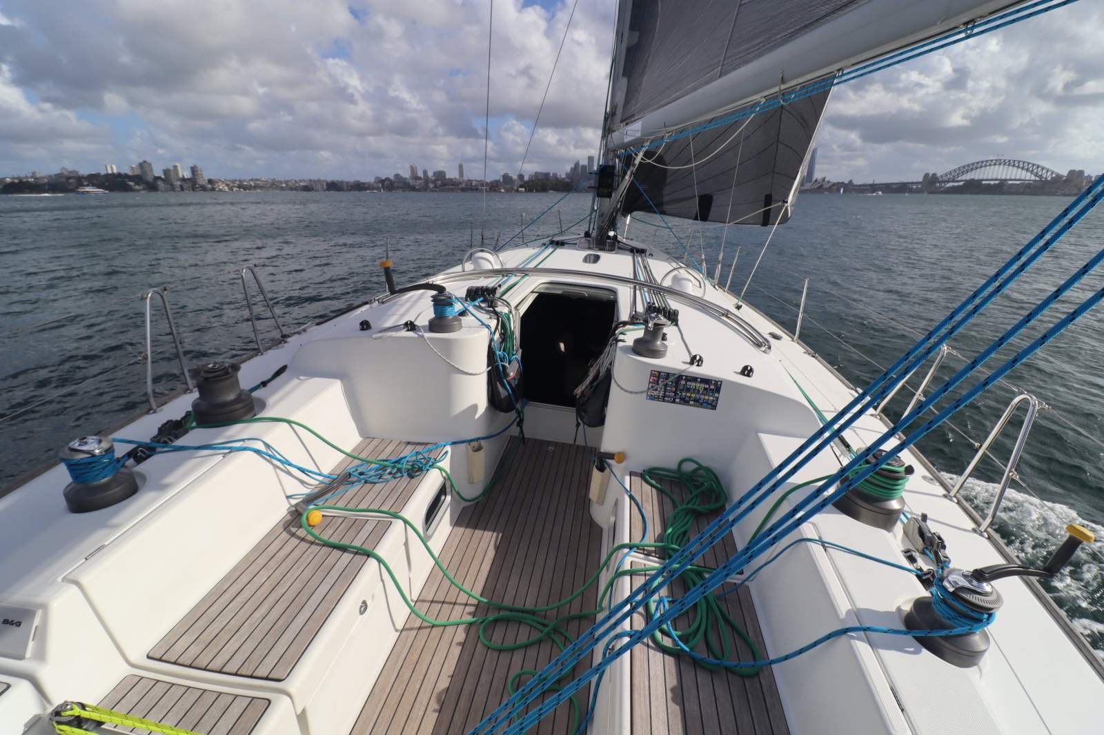 Self tailing mainsheet and cabin top winches.
