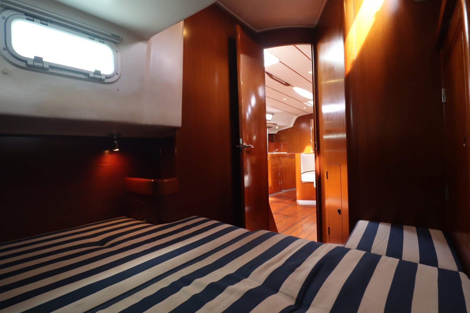 Twin double cabins aft.