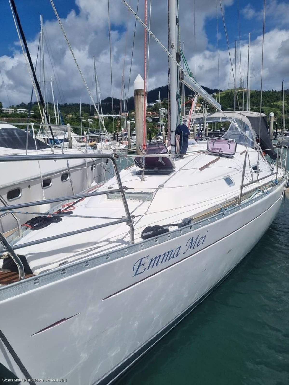 model with 2 cabin layout. Fitted with Volvo Penta fully serviced 50hp Diesel motor. Sails in excellent condition Furling headsail and Mainsail with electric halyard winch. 2x Lewmar 48 primary winches. Rigging replaced 2019. Forward cabin with ensuite, second cabin located aft of galley, large saloon area with fold down table, nav station and 2nd head. The galley has a Gas oven and cooktop, Twin sinks, 1x fridge, 1x fridge / freezer and there is a Stainless steel bbq fitted in the cockpit. Highfield 290 rib with Yamaha 6hp 4 stroke outboard on rear davit system. Fully enclosed rear shade curtains. Great yacht for cruising the Whitsunday islands this year. Lying Airlie Beach.